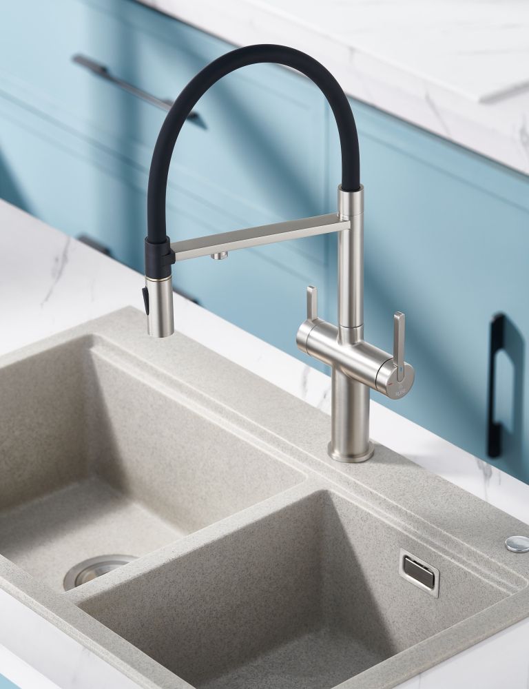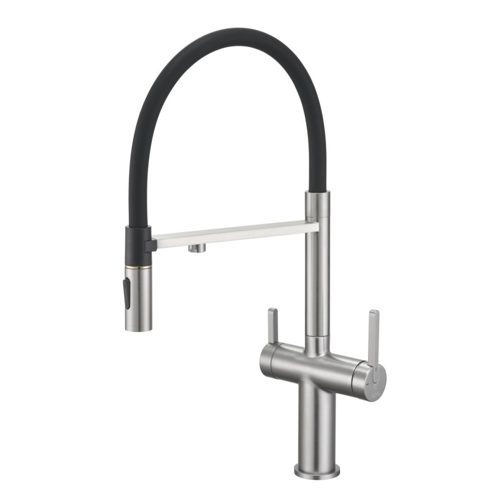 Одним из ключевых преимуществ смесителя Rose является возможность подключения фильтра для воды. Теперь у вас всегда будет доступ к чистой и свежей воде прямо из вашей мойки. Дополнительный излив служит не только для подачи фильтрованной воды, но и как держатель для гибкого излива, когда тот не используется, что добавляет удобства в повседневном использовании.