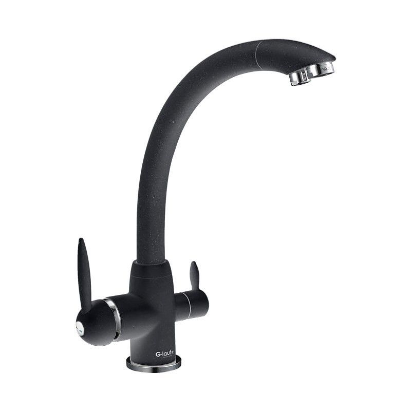 Смеситель для кухни с подключением фильтра G.Lauf GOP18-A093KB. Цвет: черный. Поверхность: матовая. Материал: латунь. Гарантийный срок: 5 лет. Стилистика дизайна современный стиль. Монтаж: на мойку;на столешницу. Управление: рычажное. Вращение излива: да. Выдвижной излив: нет. Гибкий излиа: нет. Режим душ излива: нет. Стандарт подводки: 1/2".