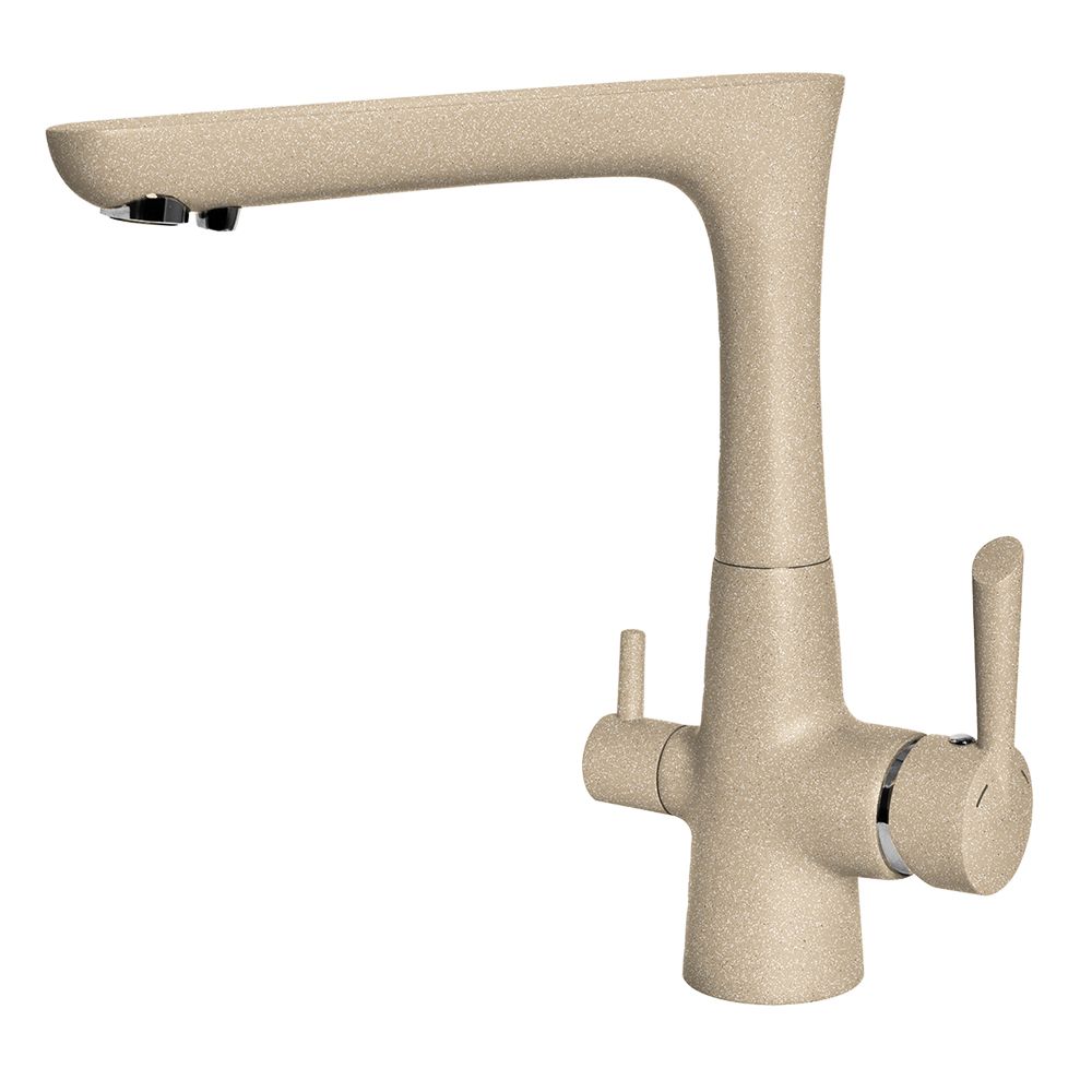 Смеситель для кухни с подключением фильтра GranFest 3223, иней. Материал: латунь. Управление: рычажное. Подключение фильтра для воды: да. Гибкая подводка. Отверстия для монтажа: 1.