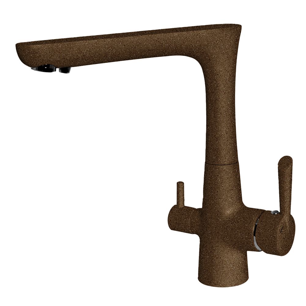 Смеситель для кухни с подключением фильтра GranFest 3223, темно-бежевый. Материал: латунь. Управление: рычажное. Подключение фильтра для воды: да. Гибкая подводка. Отверстия для монтажа: 1.
