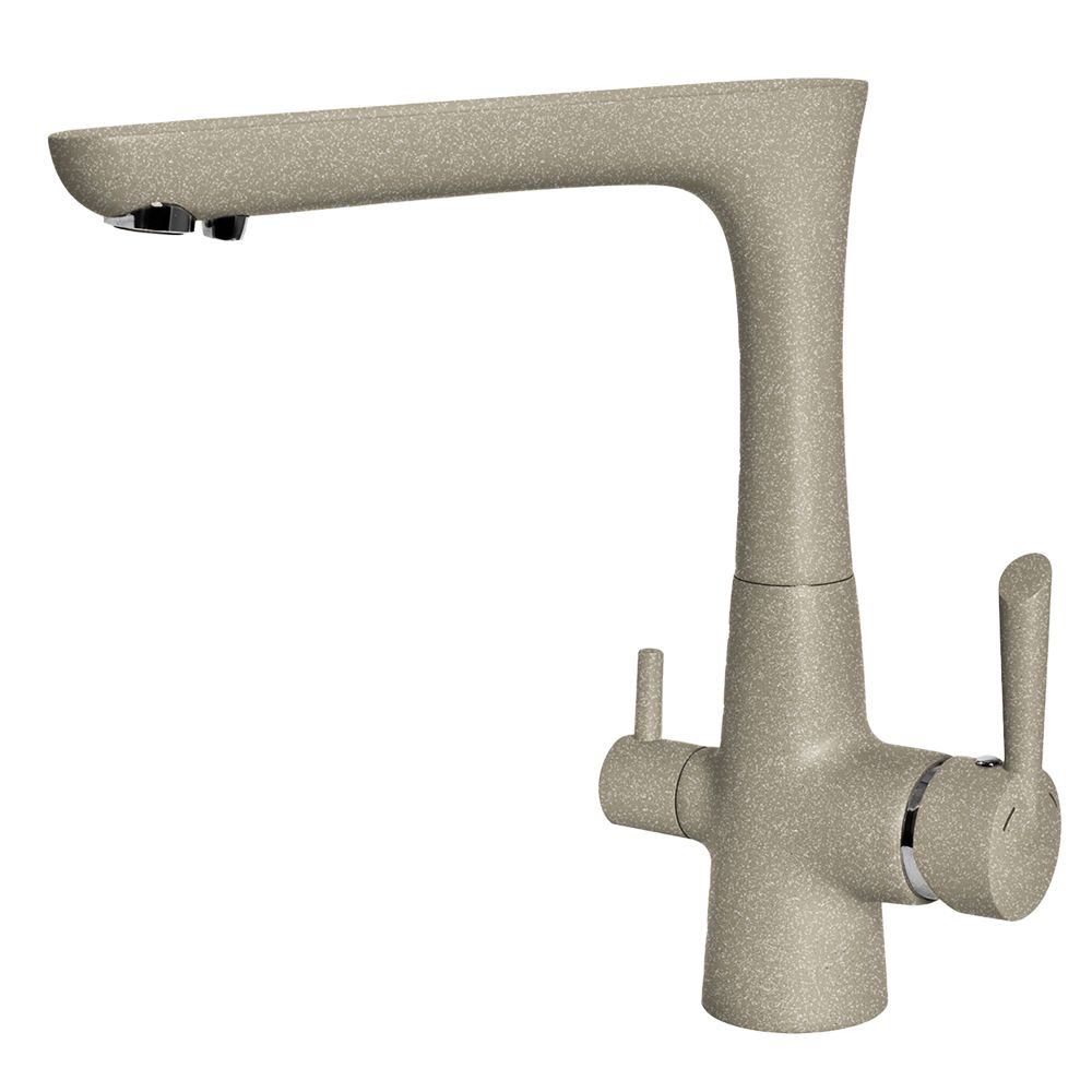 Смеситель для кухни с подключением фильтра GranFest 3223, топаз. Материал: латунь. Управление: рычажное. Подключение фильтра для воды: да. Гибкая подводка. Отверстия для монтажа: 1.