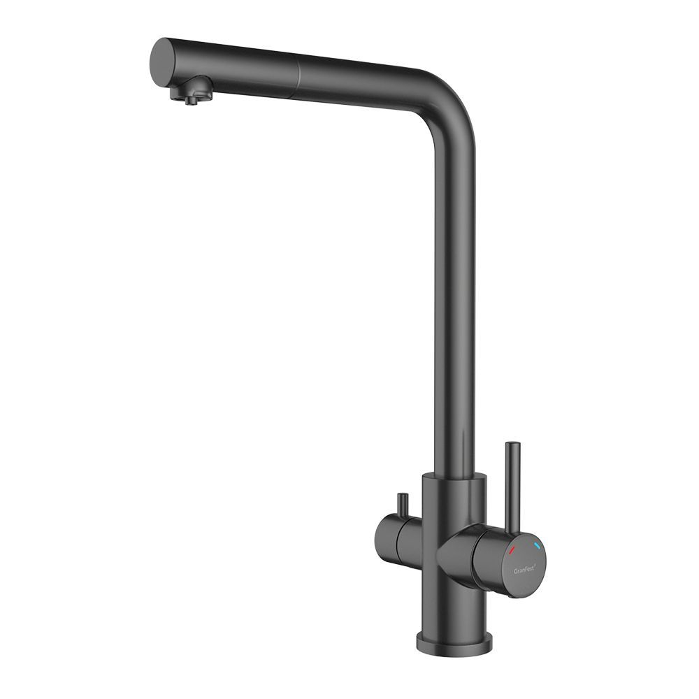 Смеситель для кухни с подключением фильтра GranFest Z-5421, графит. Материал: нержавеющая сталь. Управление: рычажное. Подключение фильтра для воды: да. Гибкая подводка. Отверстия для монтажа: 1.