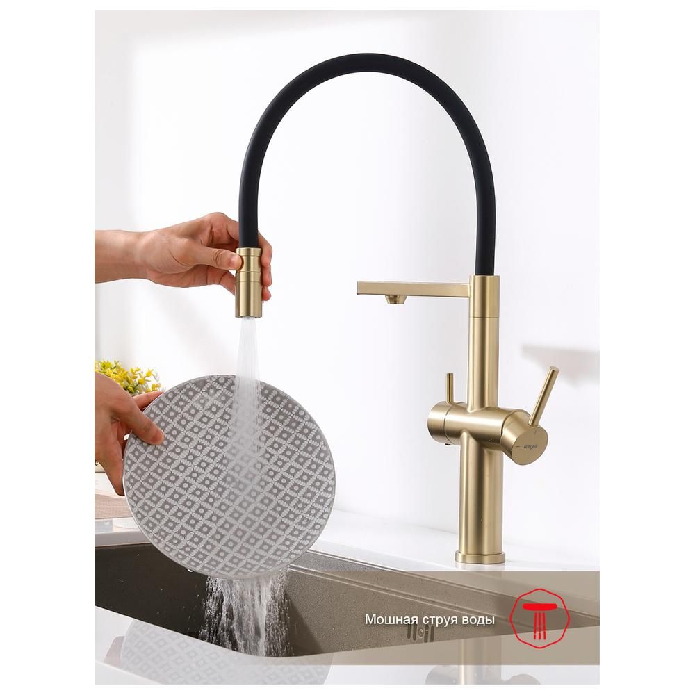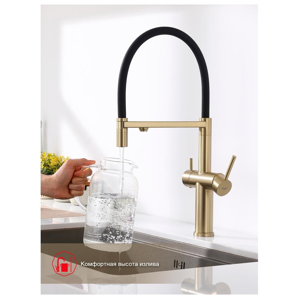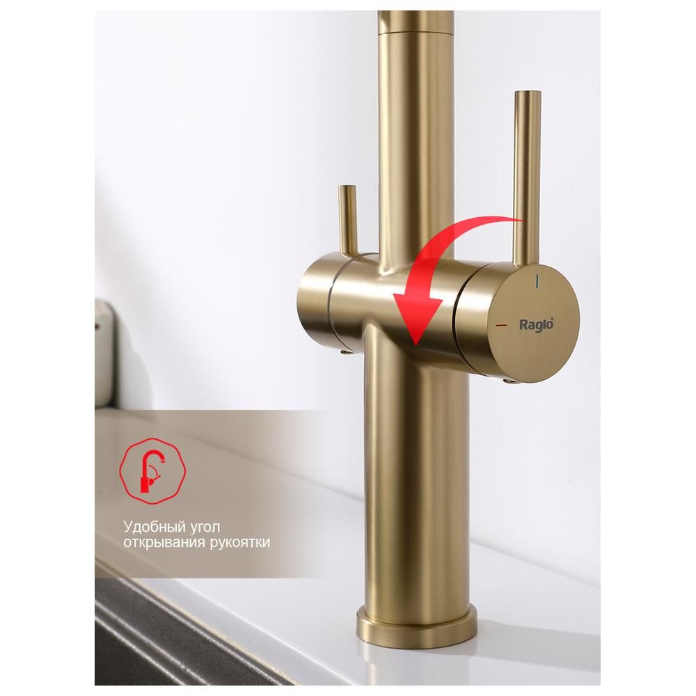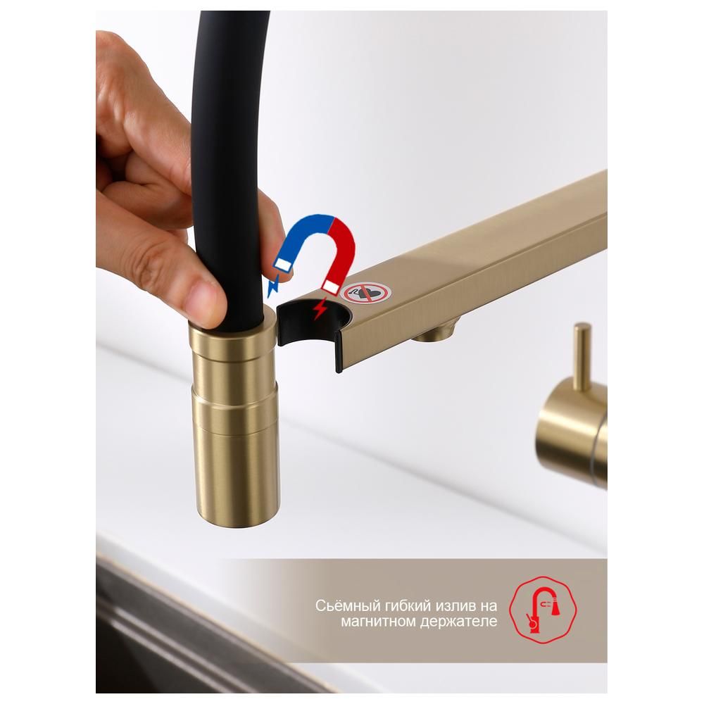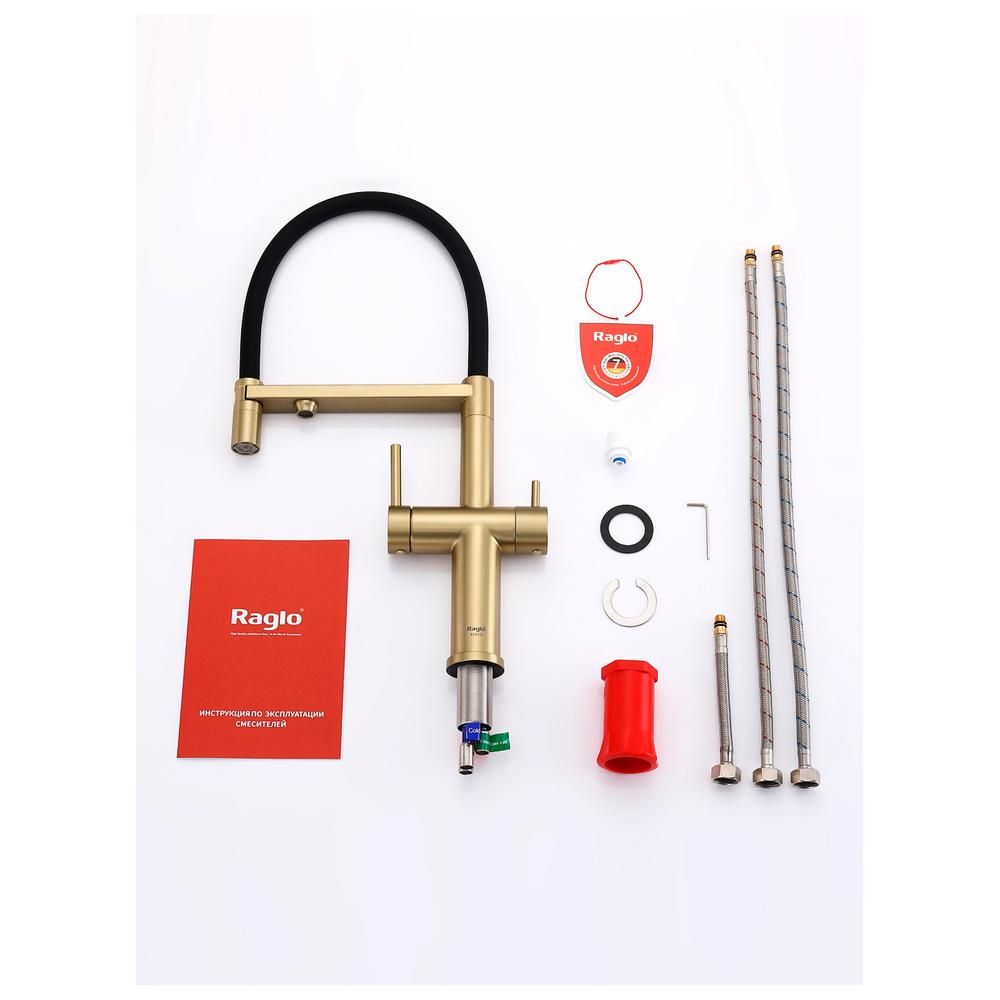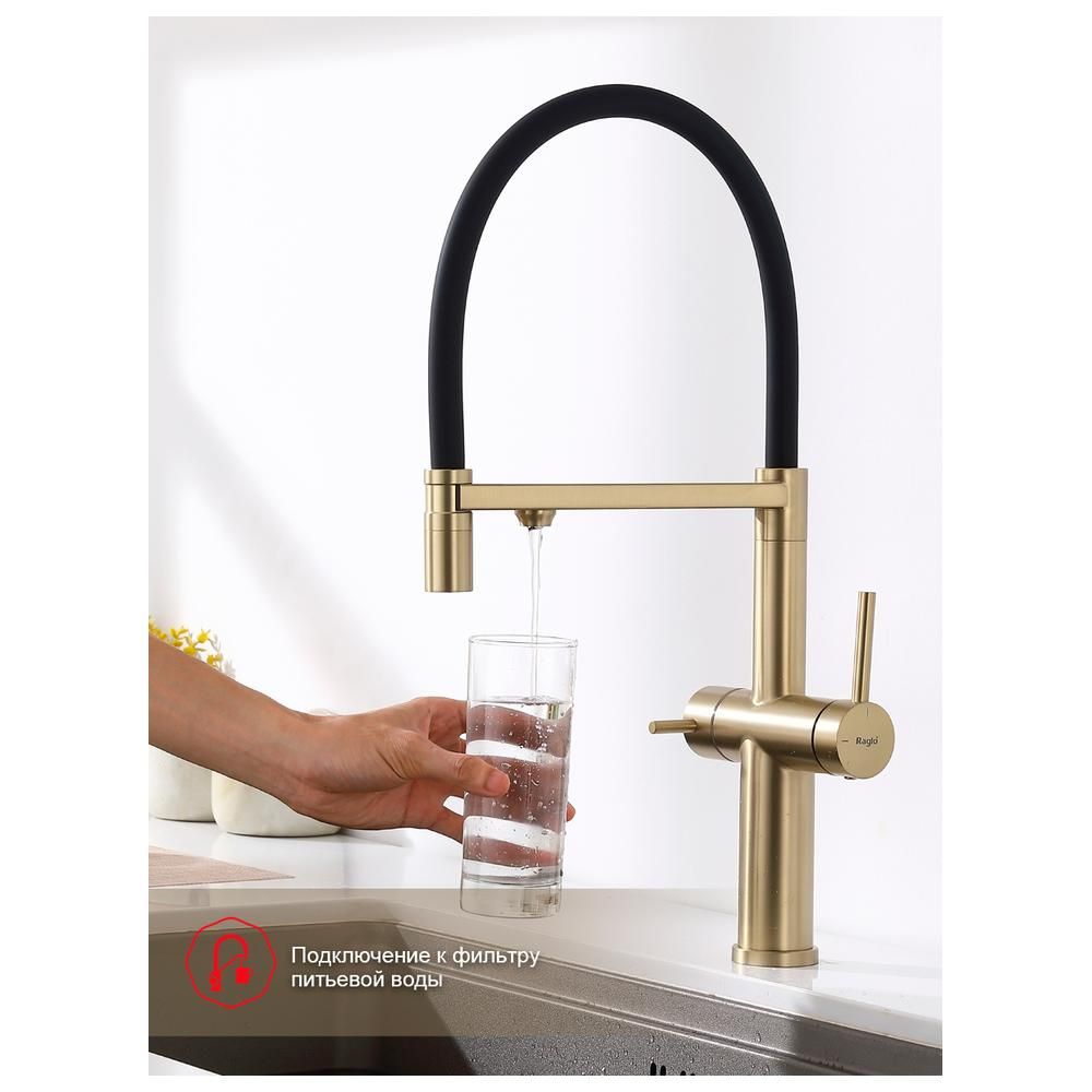 Смеситель Raglo для кухни со съемным гибким изливом, с магнитным фиксатором излива, с подключением фильтра питьевой воды. Крепление на гайке.