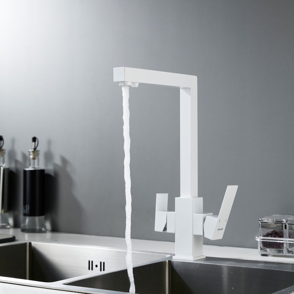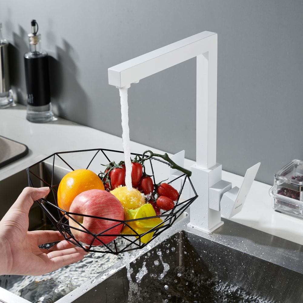 Смеситель для кухни Shevanik S148C в белом матовом цвете — это современное решение для тех, кто хочет сочетать стиль, функциональность и заботу о здоровье. Его корпус из прочной нержавеющей стали выдерживает ежедневные нагрузки, сохраняя безупречный вид даже спустя годы, а угловатый, лаконичный дизайн придаёт кухне строгой выразительности и технологичного шарма, идеально вписываясь в современные интерьеры. Управление осуществляется с помощью одного рычага и надёжного керамического картриджа, обеспечивающего плавное регулирование температуры и напора без протечек.