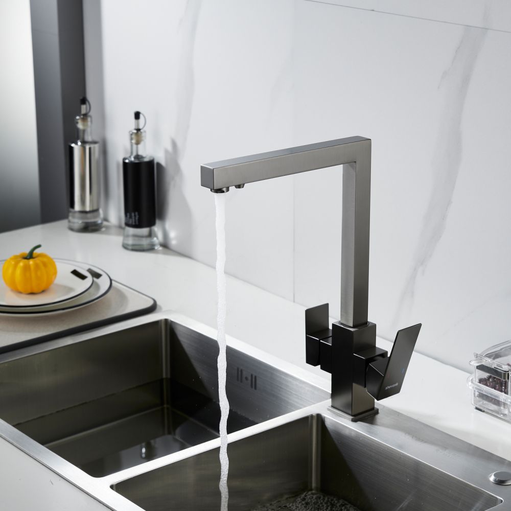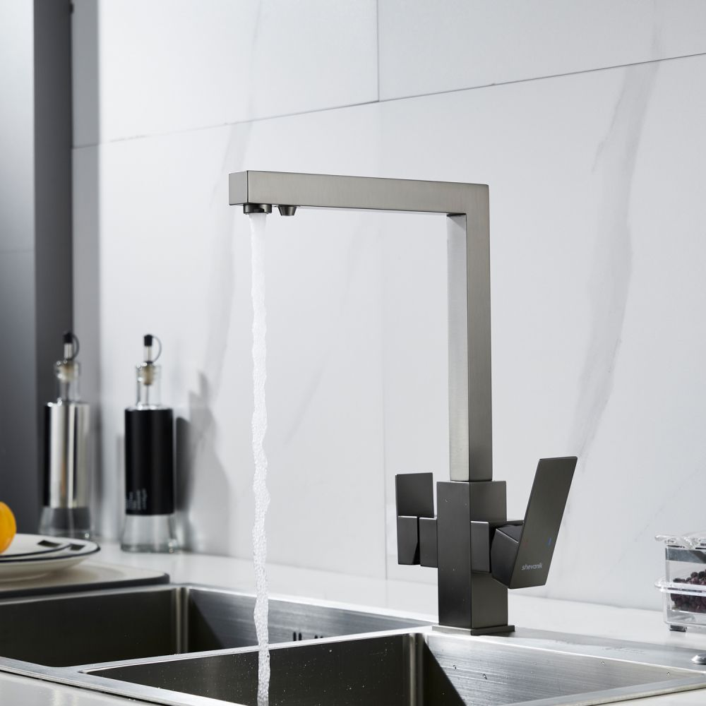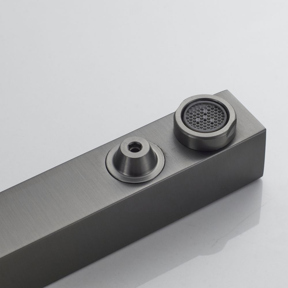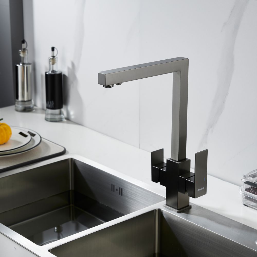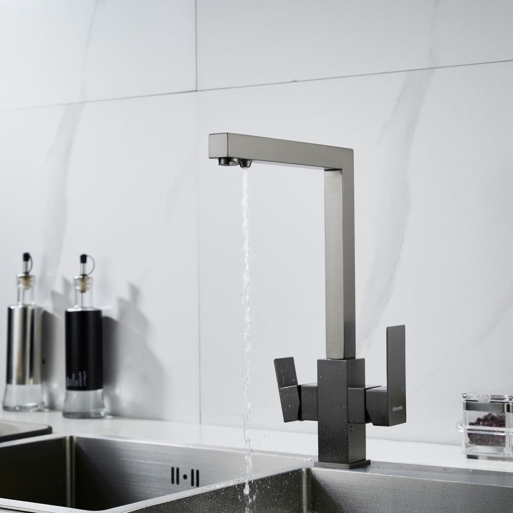 Смеситель для кухни Shevanik S148T в цвете "оружейная сталь" — это современное решение для тех, кто хочет сочетать стиль, функциональность и заботу о здоровье. Его корпус из прочной нержавеющей стали выдерживает ежедневные нагрузки, сохраняя безупречный вид даже спустя годы, а угловатый, лаконичный дизайн придаёт кухне строгой выразительности и технологичного шарма, идеально вписываясь в современные интерьеры. Управление осуществляется с помощью одного рычага и надёжного керамического картриджа, обеспечивающего плавное регулирование температуры и напора без протечек.