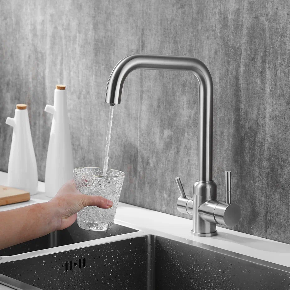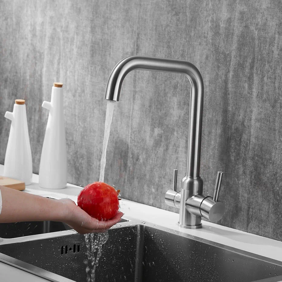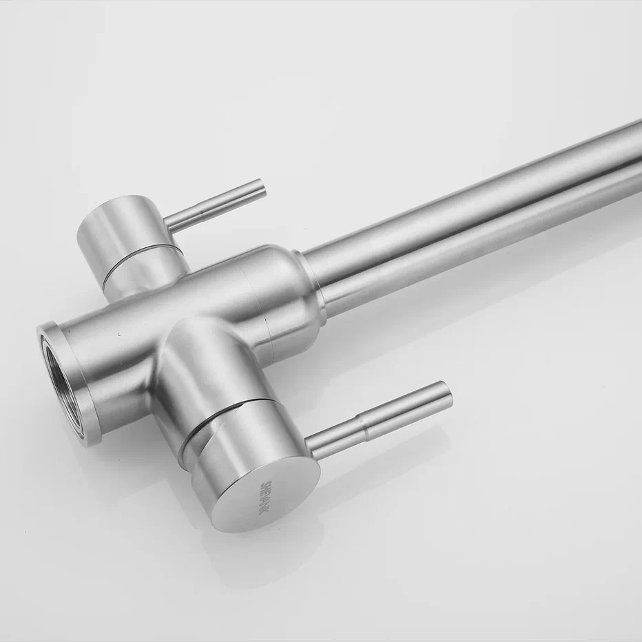 Смеситель для кухни с подключением фильтра Shevanik S268B, сатин. Управление: рычажное. Вращение излива: да. Выдвижной излив: нет. Гибкий излив: нет. Высота:35,5.