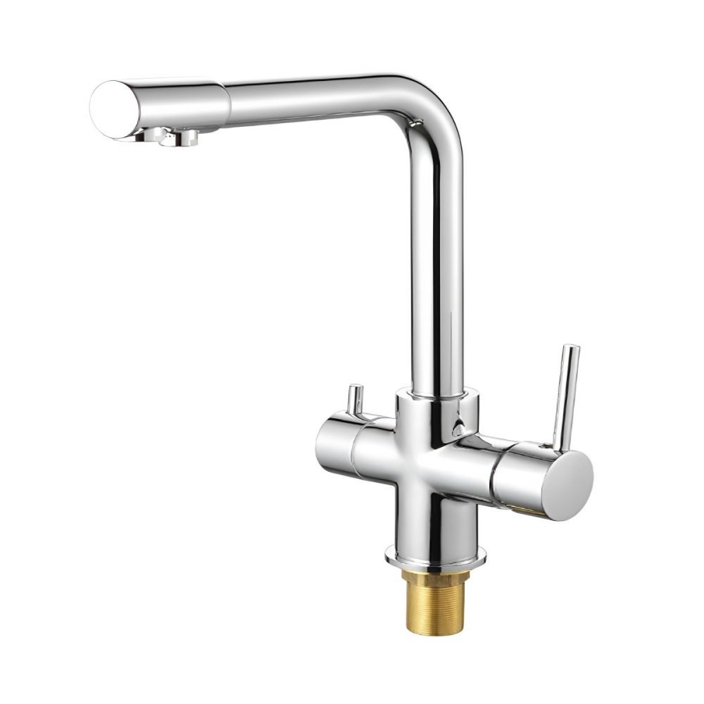 Смеситель для кухни D-Lin D159315-1 изготовлен из латуни по технологии литья в песчаную форму. Имеет встроенный канал для подачи питьевой воды. Оснащён аэратором из ABS-пластика Neoperl (Германия) с функцией легкой очистки от известкового налёта.