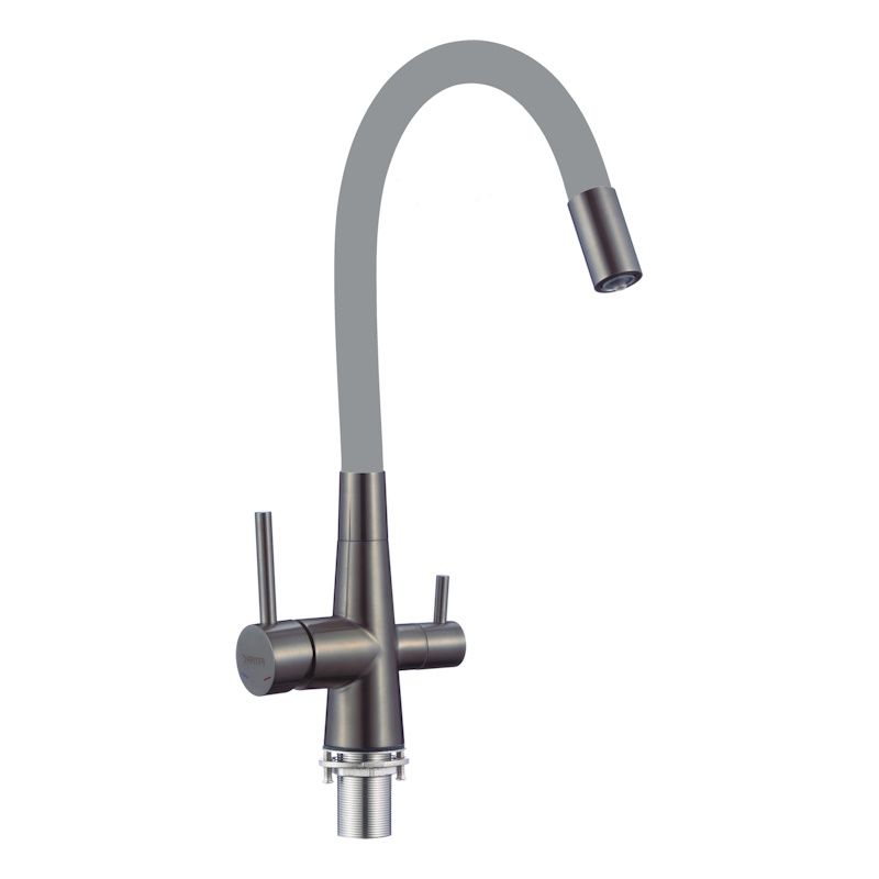 Цвет: смеситель выполнен в цвете "графит", гибкий силиконовый излив серый.