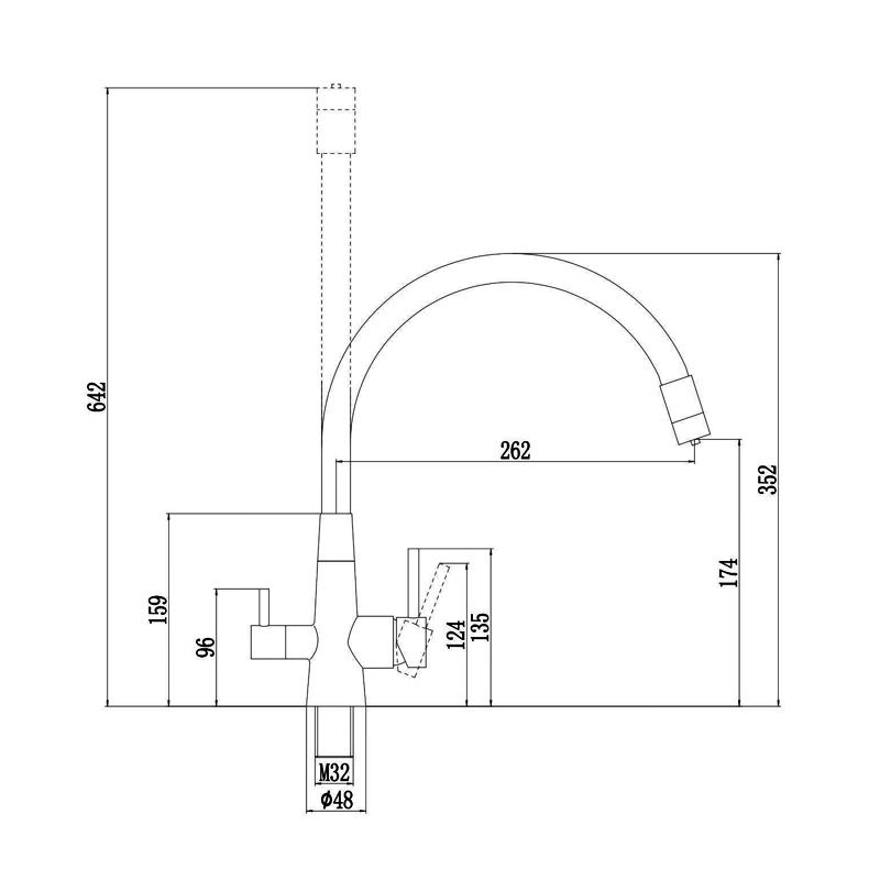 Такая конструкция надёжна, устойчива к деформации и легко очищается. Излив фиксируется в нужном положении, позволяя удобно направлять поток воды.