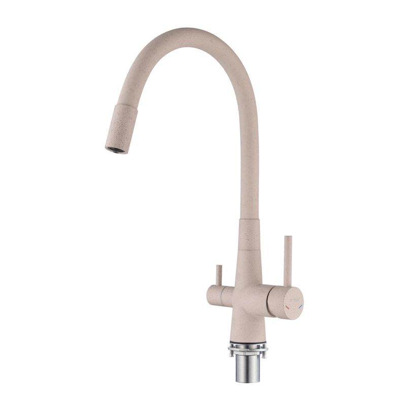 Fmark FS1062-S — это современный кухонный смеситель с функцией подключения фильтра, выполненный в оригинальной песочной расцветке с текстурным покрытием под натуральный камень. Он сочетает в себе надёжность нержавеющей стали, продуманный функционал и эстетичный дизайн, который гармонично впишется в кухни в стиле эко, скандинавском или минимализм.