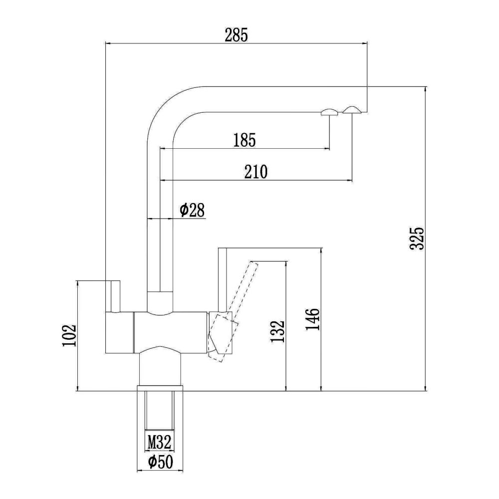 Прямой излив с углом 90° — лаконичный и удобный, обеспечивает точную подачу воды в центр мойки.