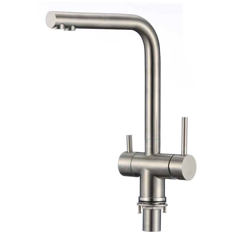 Надёжность стали, раздельная подача воды и удобный монтаж делают его достойным выбором для современных кухонь.