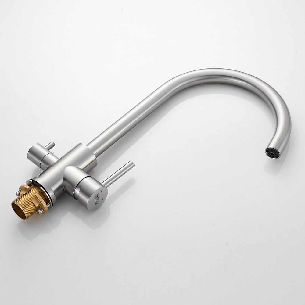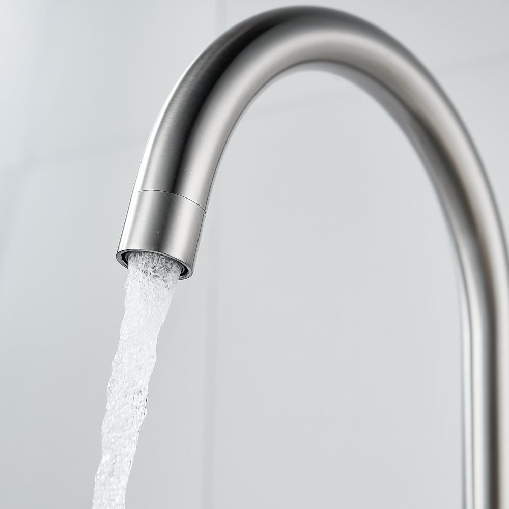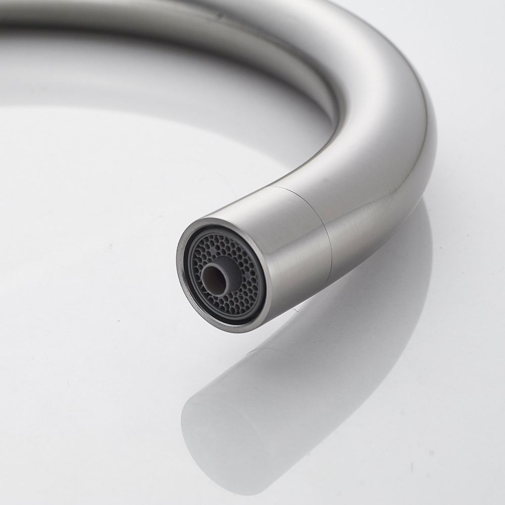 Смеситель оснащён поворотным изливом с аэратором, который обеспечивает экономию воды и делает поток более мягким и равномерным. Также имеется возможность подключения фильтра для питьевой воды, что позволит вам получать чистую воду прямо из крана.