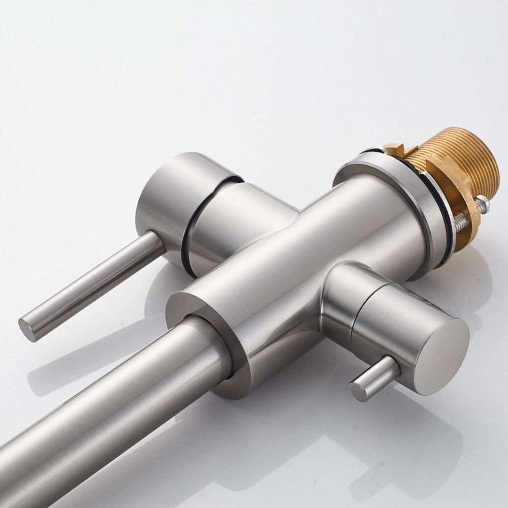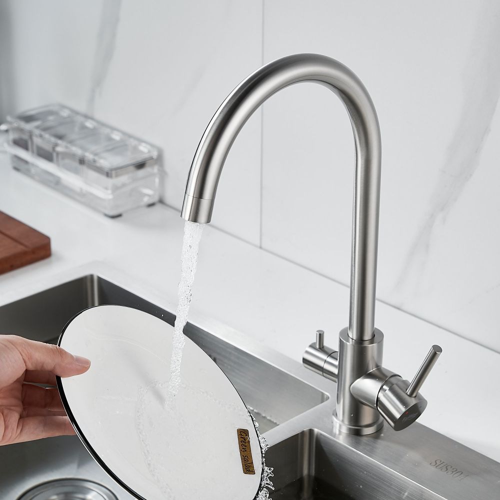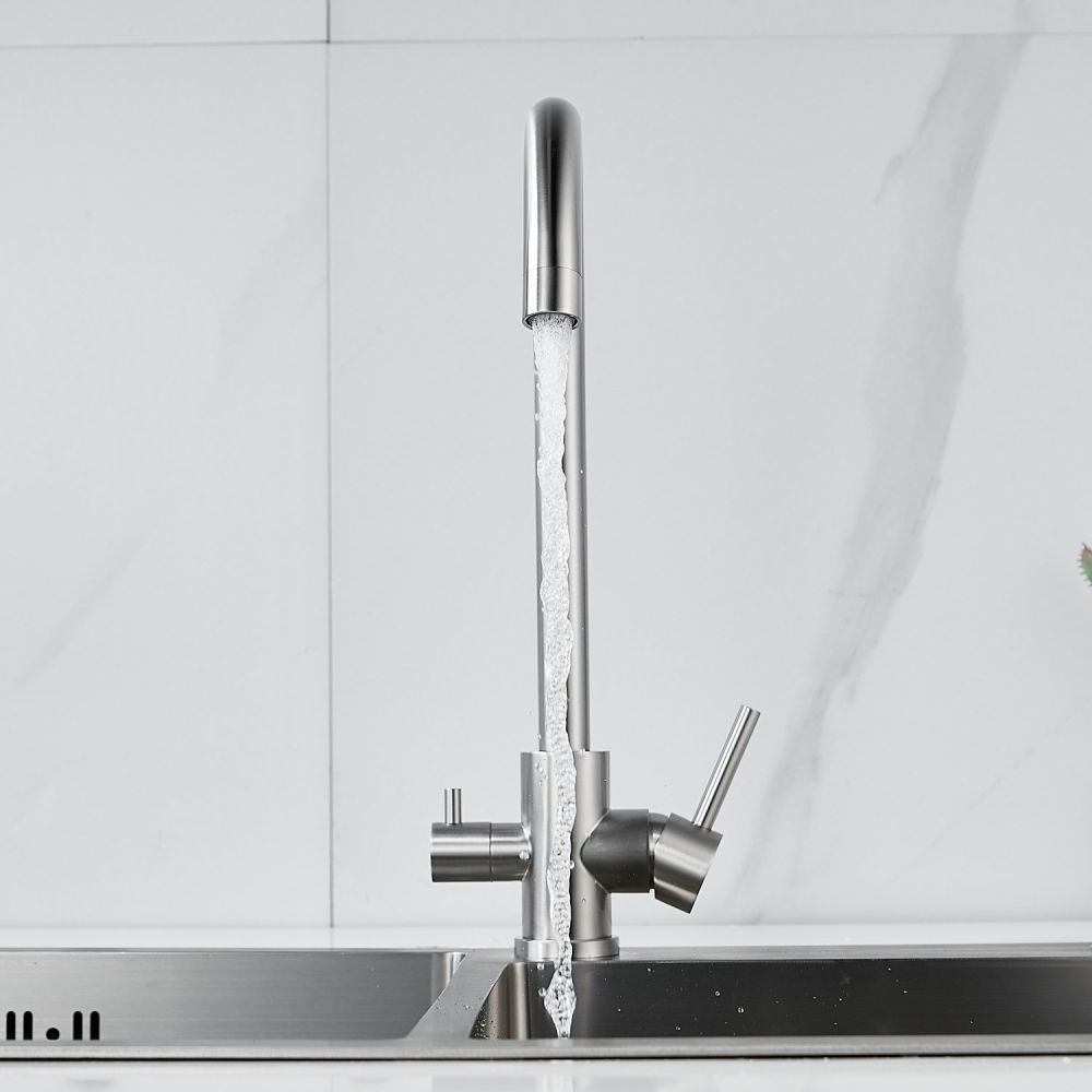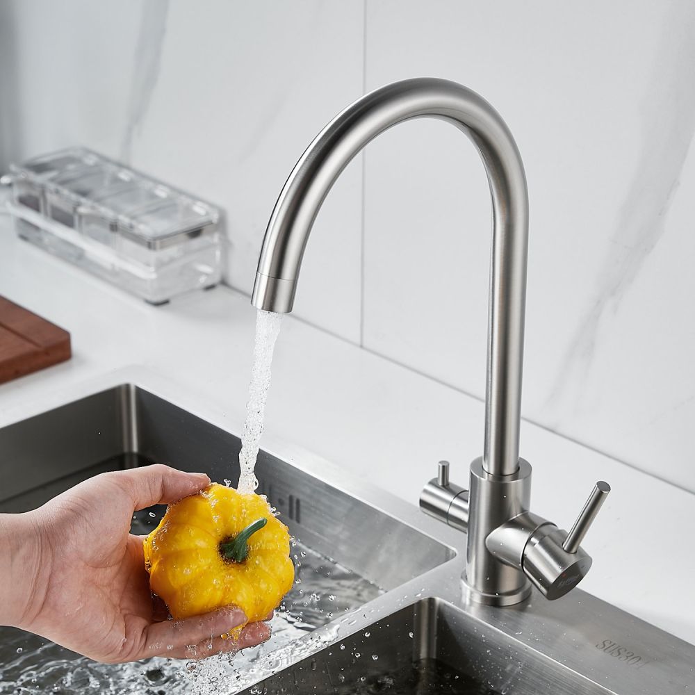 Смеситель оснащён поворотным изливом с аэратором, который обеспечивает экономию воды и делает поток более мягким и равномерным. Также имеется возможность подключения фильтра для питьевой воды, что позволит вам получать чистую воду прямо из крана.