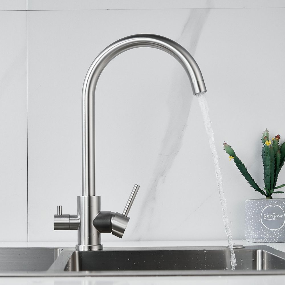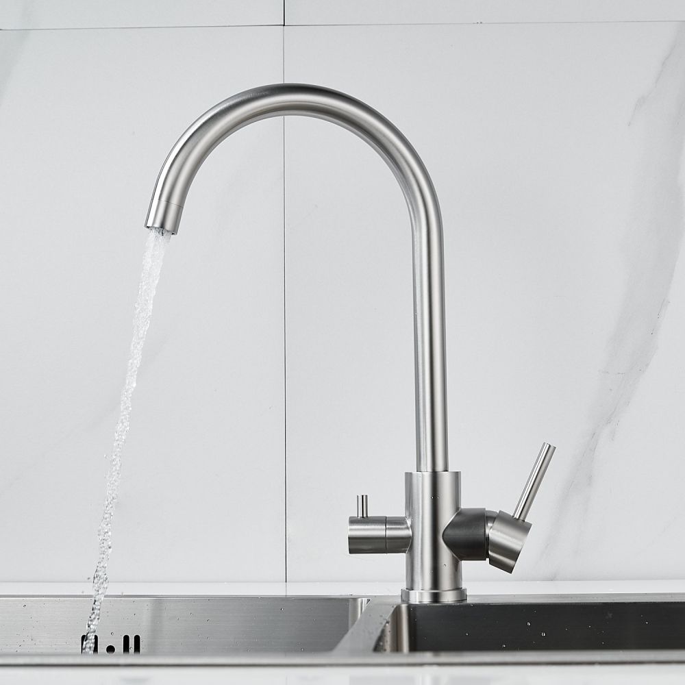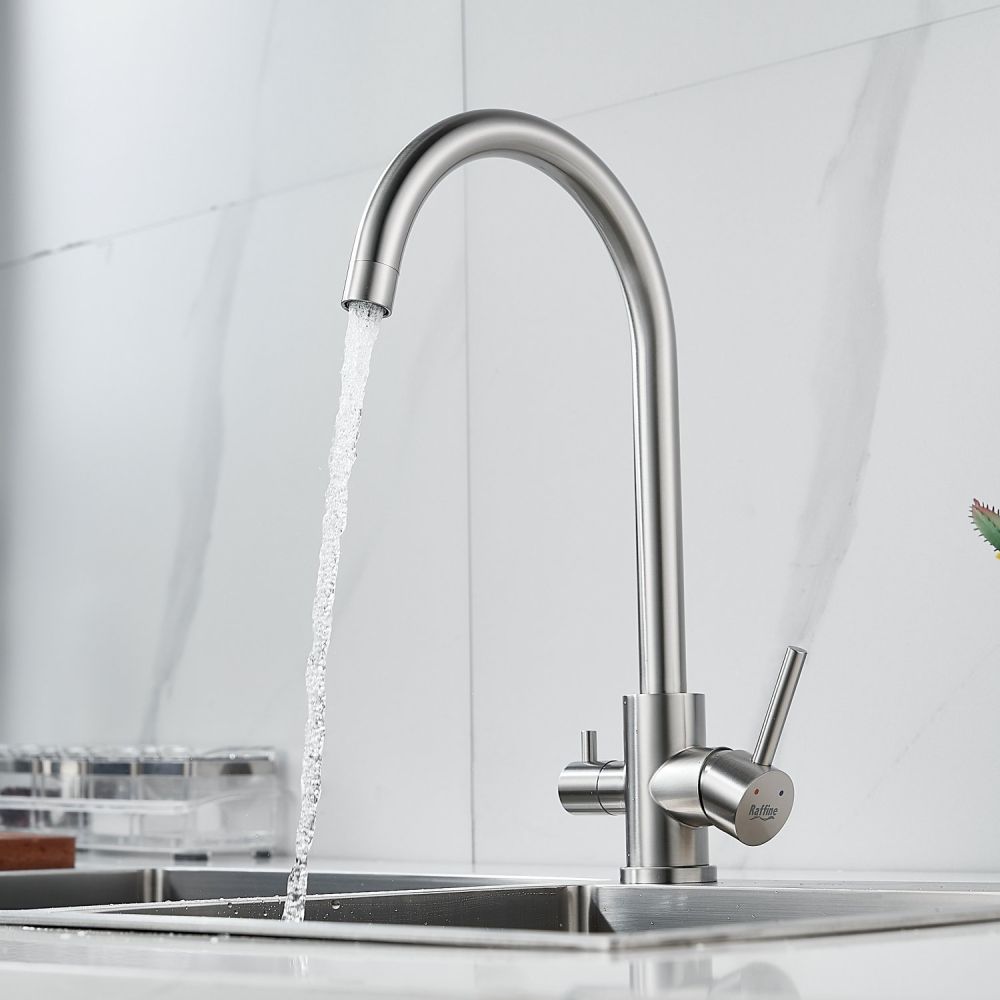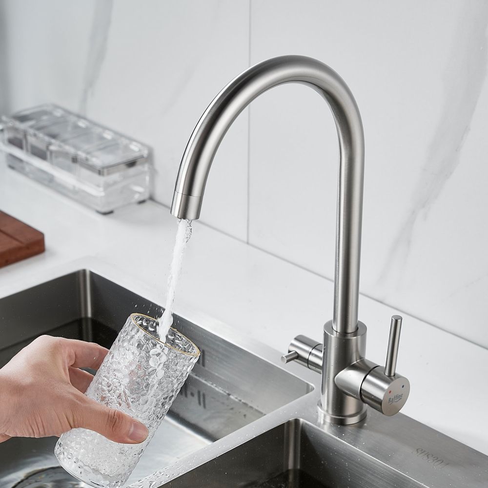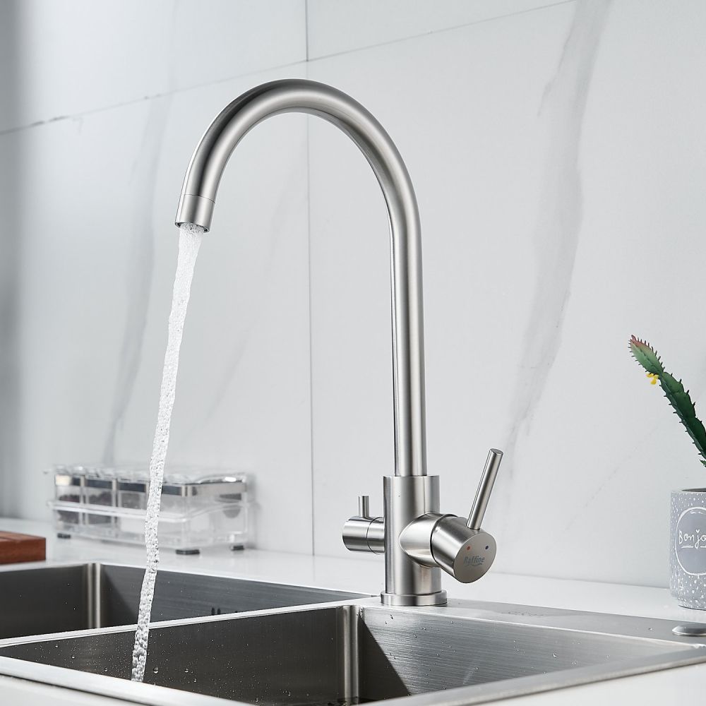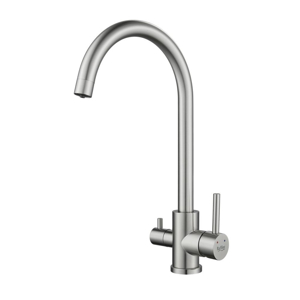 Смеситель для кухни Raffine F108L в цвете сатин — стильное и функциональное решение для вашей кухни. Изготовлен из высококачественной нержавеющей стали, что гарантирует его прочность и долговечность.