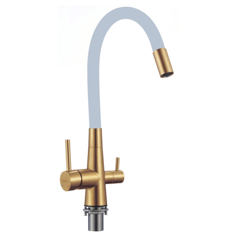 Смеситель для кухни с подключением к фильтру Fmark FS1062-C04, матовое золото. Гарантийный срок: 5 лет. Поверхность: матовая. Материал: нержавеющая сталь. Монтаж: на мойку, на столешницу.