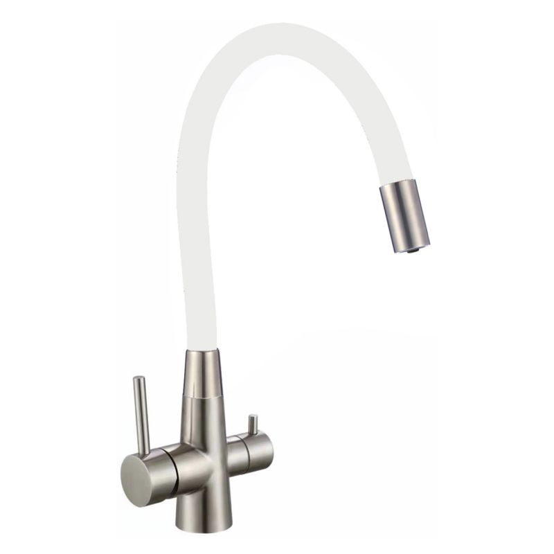 Смеситель для кухни с подключением к фильтру Fmark FS1062-L02, сатин. Гарантийный срок: 5 лет. Поверхность: матовая. Материал: нержавеющая сталь. Монтаж: на мойку, на столешницу.