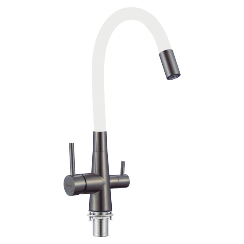 Смеситель для кухни с подключением к фильтру Fmark FS1062-Q02, графит. Гарантийный срок: 5 лет. Поверхность: матовая. Материал: нержавеющая сталь. Монтаж: на мойку, на столешницу.