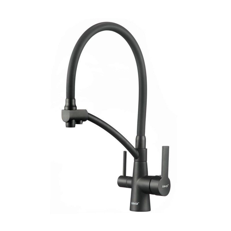 Смеситель для кухни с подключением к фильтру Savol S-L1805H-01, черный. Гарантийный срок: 5 лет. Поверхность: Матовая. Материал: латунь. Монтаж: на мойку, на столешницу.