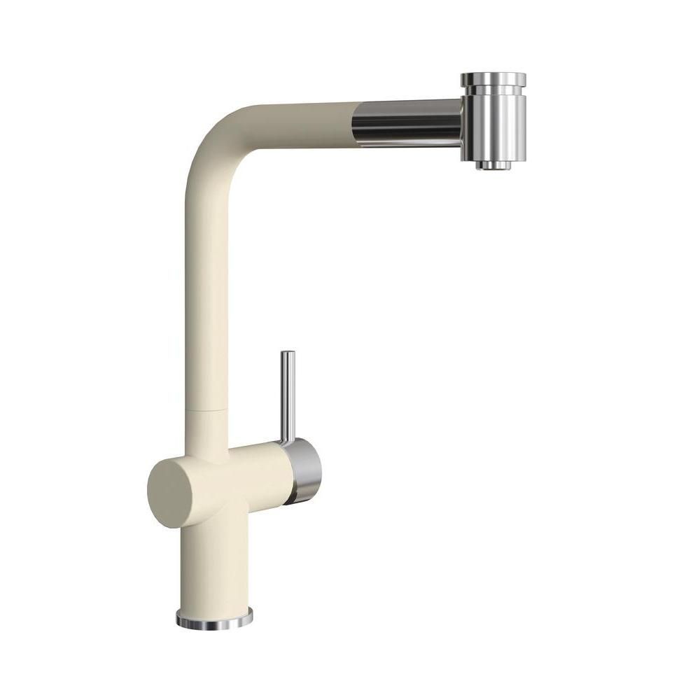Смеситель однорычажный с выдвижным изливом. Материал – нержавеющая сталь AISI 304. Поворотный излив. Керамический картридж 35мм. Гибкая подводка. Два режима напора воды – душ/струя.