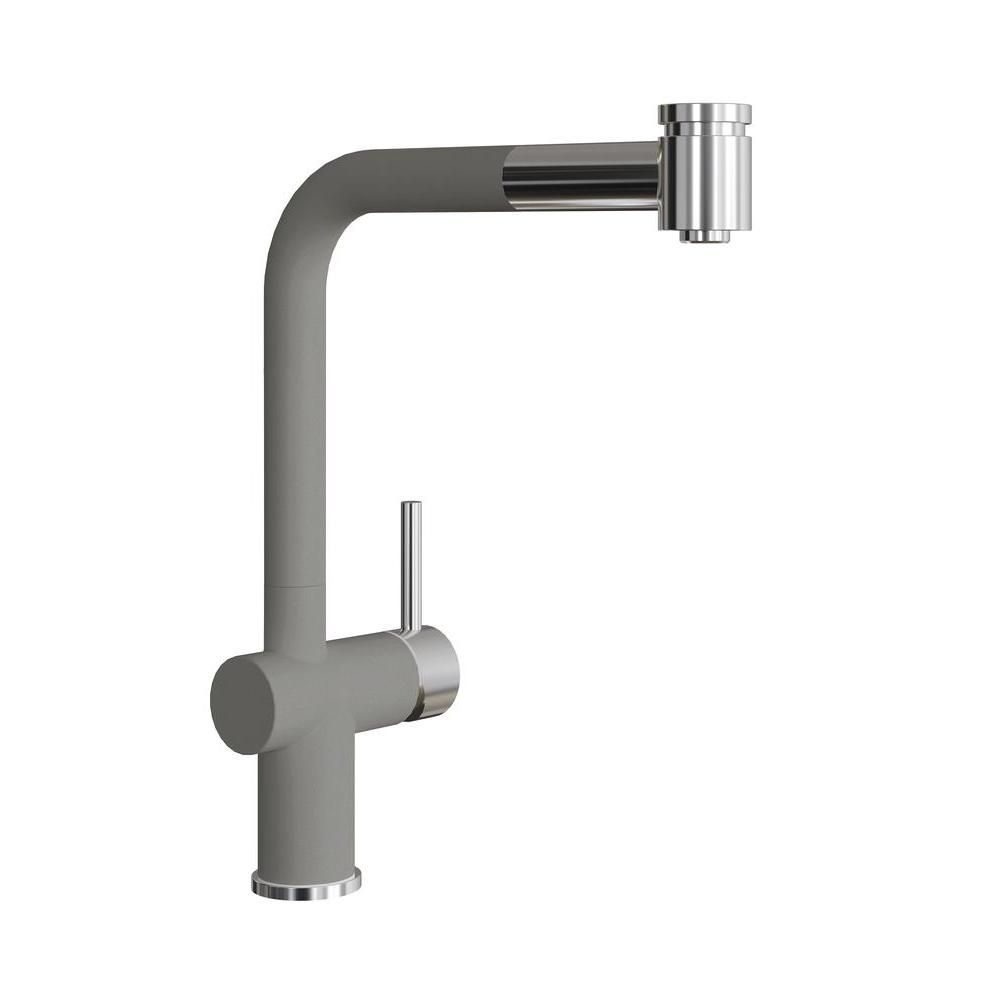 Смеситель однорычажный с выдвижным изливом. Материал – нержавеющая сталь AISI 304. Поворотный излив. Керамический картридж 35мм. Гибкая подводка. Два режима напора воды – душ/струя.