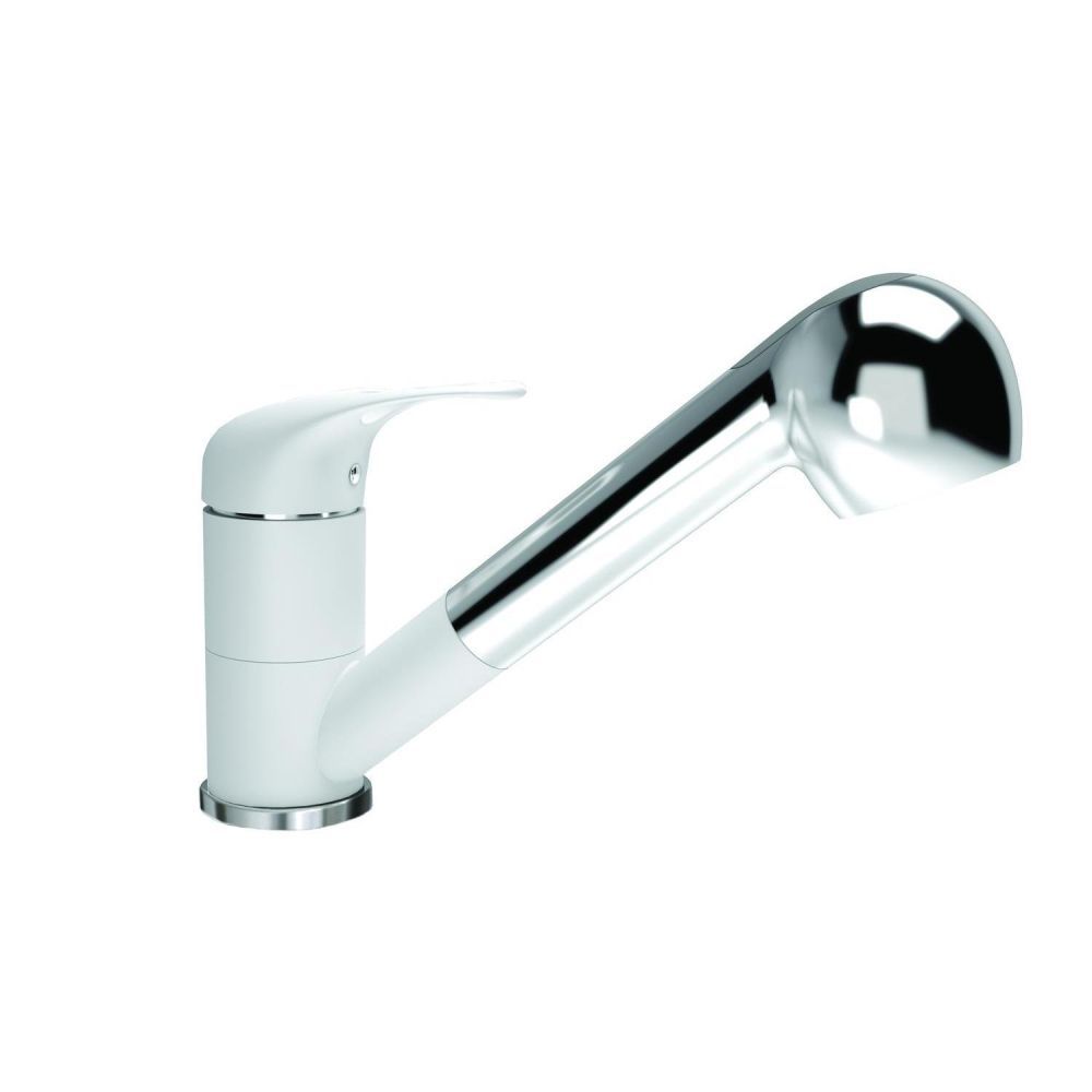 Смеситель однорычажный с низким изливом. Материал - латунь. Поворотный выдвижной излив. Керамический картридж 40мм. Гибкая подводка. Выдвижной излив.