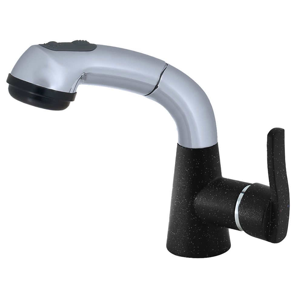 Смеситель для кухни с выдвижным изливом и режимом душ GranFest 3773, черный. Материал: латунь. Управление: рычажное. Подключение фильтра для воды: нет. Гибкая подводка. Отверстия для монтажа: 1.