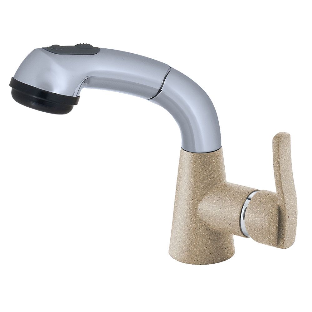 Смеситель для кухни с выдвижным изливом и режимом душ GranFest 3773, крем. Материал: латунь. Управление: рычажное. Подключение фильтра для воды: нет. Гибкая подводка. Отверстия для монтажа: 1.
