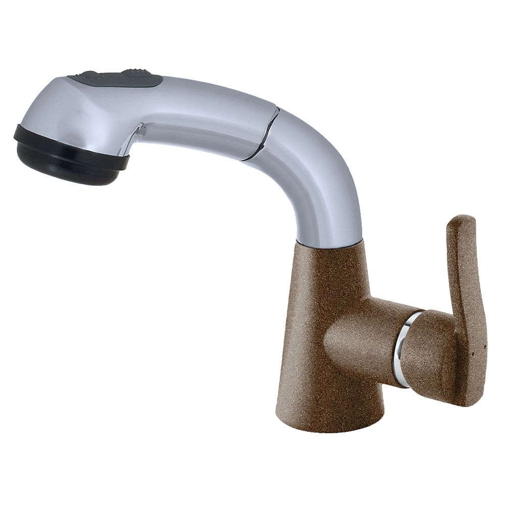 Смеситель для кухни с выдвижным изливом и режимом душ GranFest 3773, тёмно-бежевый. Материал: латунь. Управление: рычажное. Подключение фильтра для воды: нет. Гибкая подводка. Отверстия для монтажа: 1.