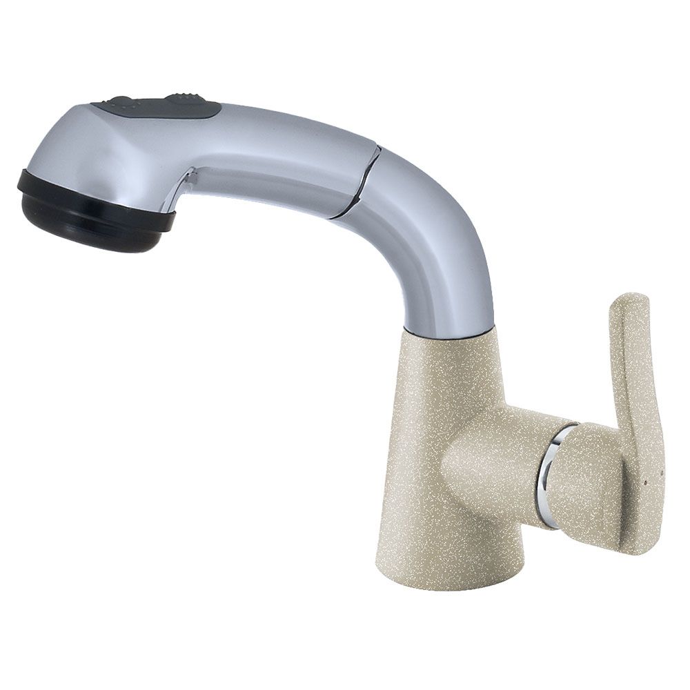 Смеситель для кухни с выдвижным изливом и режимом душ GranFest 3773, топаз. Материал: латунь. Управление: рычажное. Подключение фильтра для воды: нет. Гибкая подводка. Отверстия для монтажа: 1.