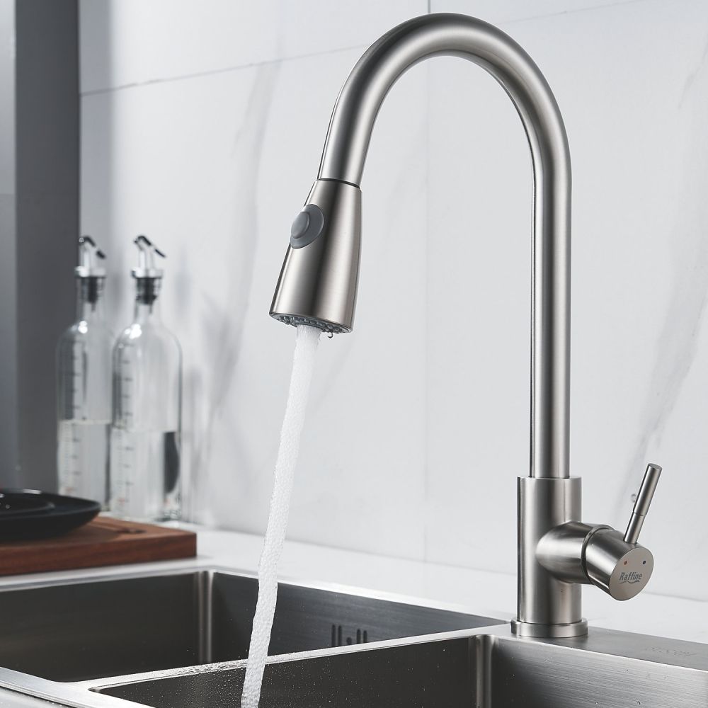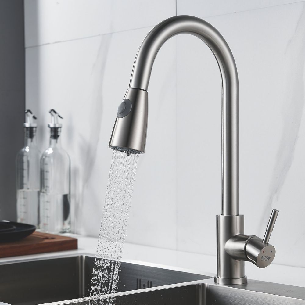 Смеситель для кухни Raffine F213L в цвете сатин — стильное и функциональное решение для вашей кухни. Изготовлен из высококачественной нержавеющей стали, что гарантирует его прочность и долговечность.