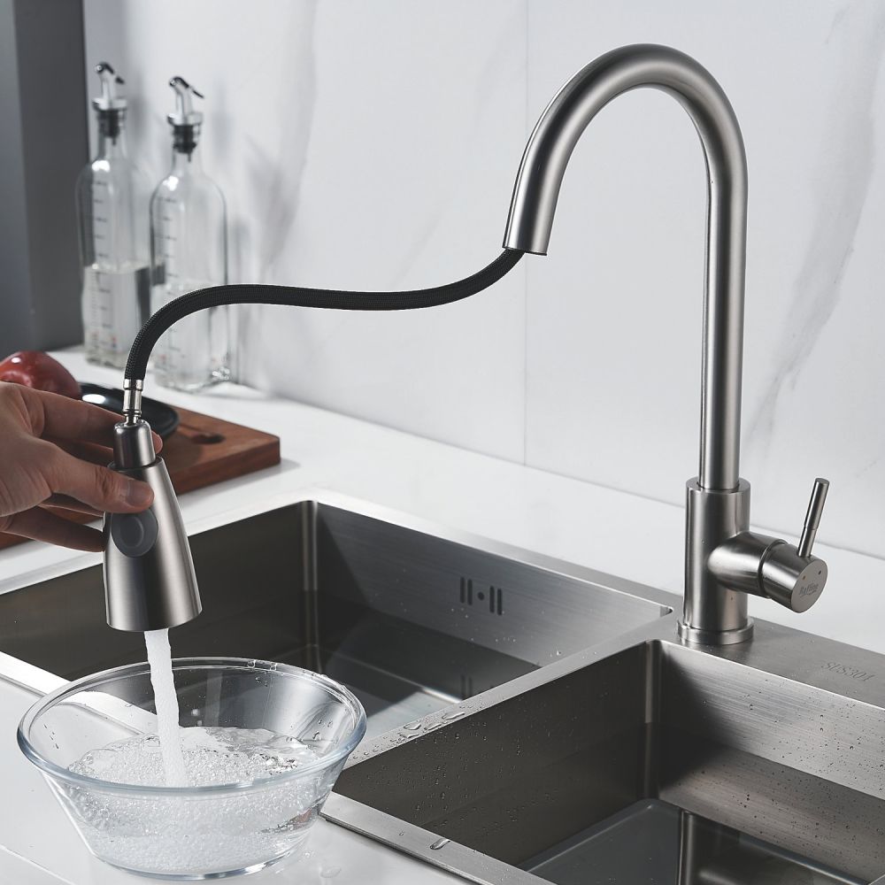 Смеситель оснащён поворотным выдвижным изливом с режимом «душ», который позволяет выбирать между обычной струёй воды и мягкой душевой насадкой. Благодаря этому вы сможете легко и быстро настроить нужный режим в зависимости от ваших потребностей и предпочтений.