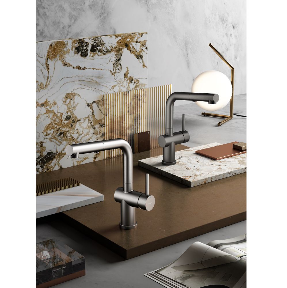 Raglo R86.49.05. Цвет: сатин. Смеситель для кухни с выдвижным изливом. Кухонные смесители торговой марки RAGLO – это оригинальность и уют для каждого дома. Кран выполнен из высококачественных материалов, что гарантирует его долговечность и надежность. Эта сантехника отличается полезным функционалом, экологичными решениями, оригинальным стилем и легкостью монтажа. Поворотный излив позволяет с большим удобством пользоваться им на кухне. Оснащен гибкой системой подключения, что облегчает его монтаж и установку. Встроенный аэратор эффективно фильтрует примеси и уменьшает шум от импульсов воды. Гладкая внутренняя стенка обеспечивает мягкий поток воды. Высококлассная технология делает поверхность яркой и блестящей. Подходит к кухонным мойкам практически любых размеров и форм.