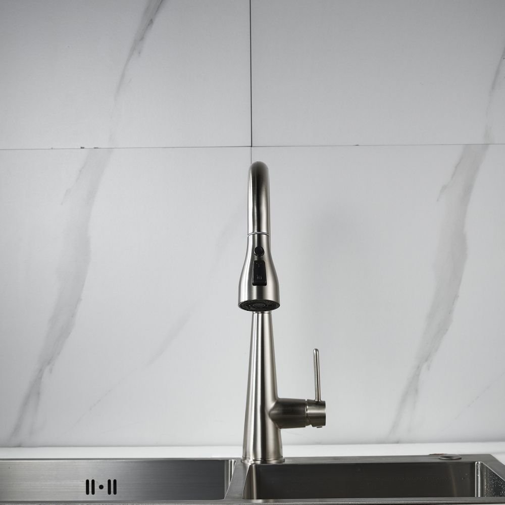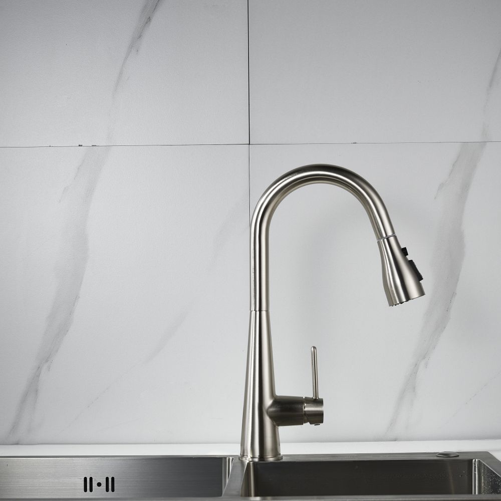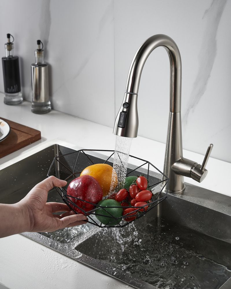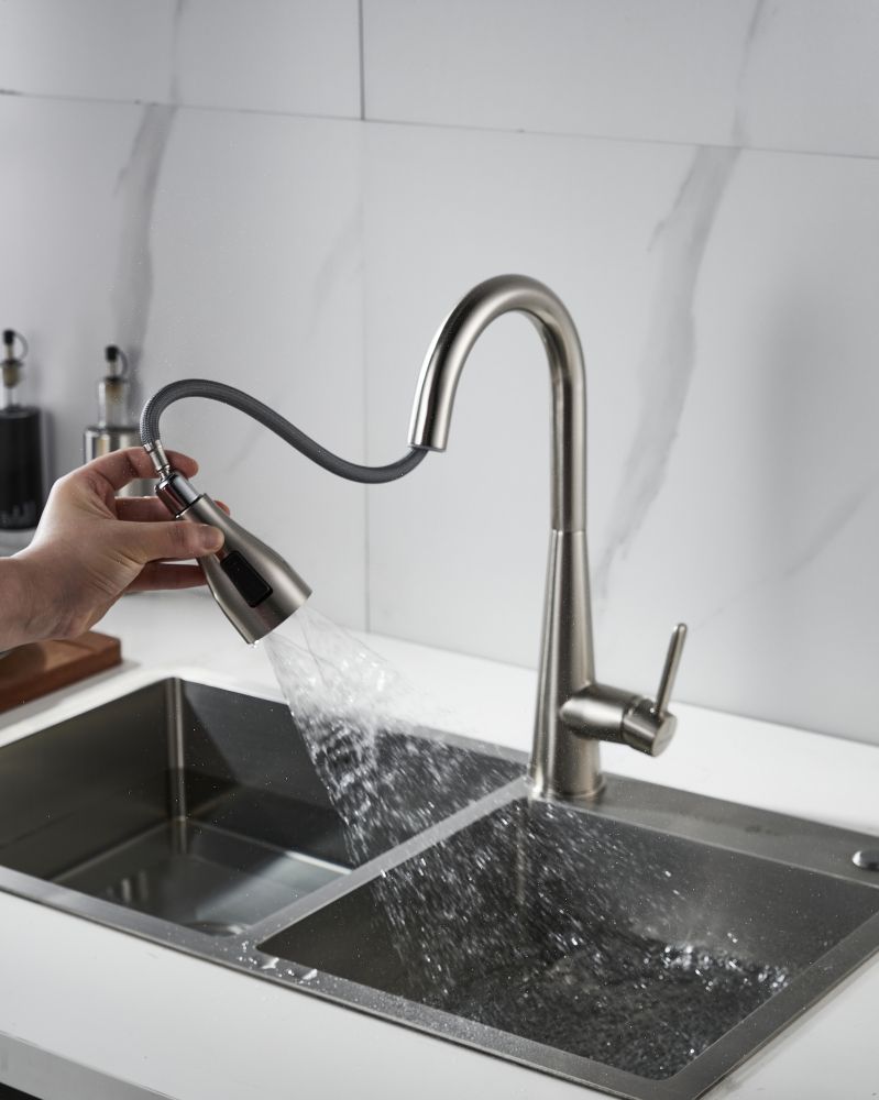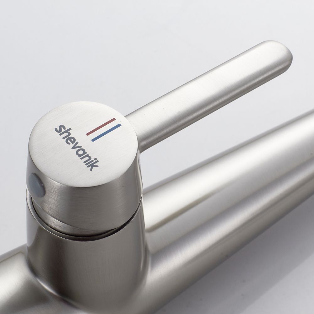 Смеситель для кухни Shevanik S363L в цвете "сатин" — это идеальное сочетание современного дизайна и практичности для вашей кухни. Изготовленный из высококачественной нержавеющей стали, он не только выглядит стильно и элегантно, но и отличается исключительной прочностью и долговечностью. Рычажное управление с керамическим картриджем обеспечивает плавное и точное регулирование температуры и напора воды. Особенностью модели является выдвижной излив с тремя режимами работы: стандартная струя через аэратор для повседневного использования, режим “душ” для удобного мытья овощей и фруктов, а также две мощные струи-распылители для эффективной очистки сильнозагрязнённых поверхностей. Монтаж осуществляется при помощи надёжной гайки, а в комплекте предусмотрена гибкая подводка длиной 45 см со стандартным подключением 1/2". 5-летняя гарантия подтверждает высокое качество и надёжность смесителя, который станет незаменимым помощником на вашей кухне, сочетая в себе функциональность, удобство использования и современный внешний вид.