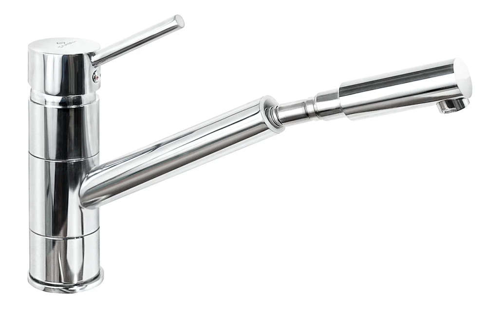 Современный однорычажный смеситель для кухни с вытяжным изливом от компании «СЛАВЕН» c собственной сборочной линией полного цикла в Подмосковье.