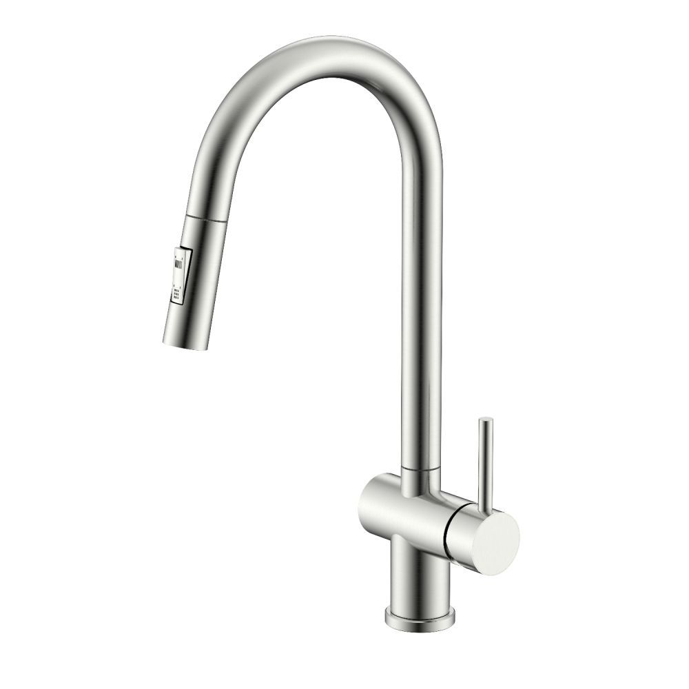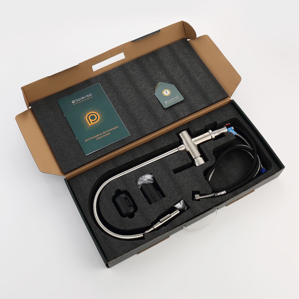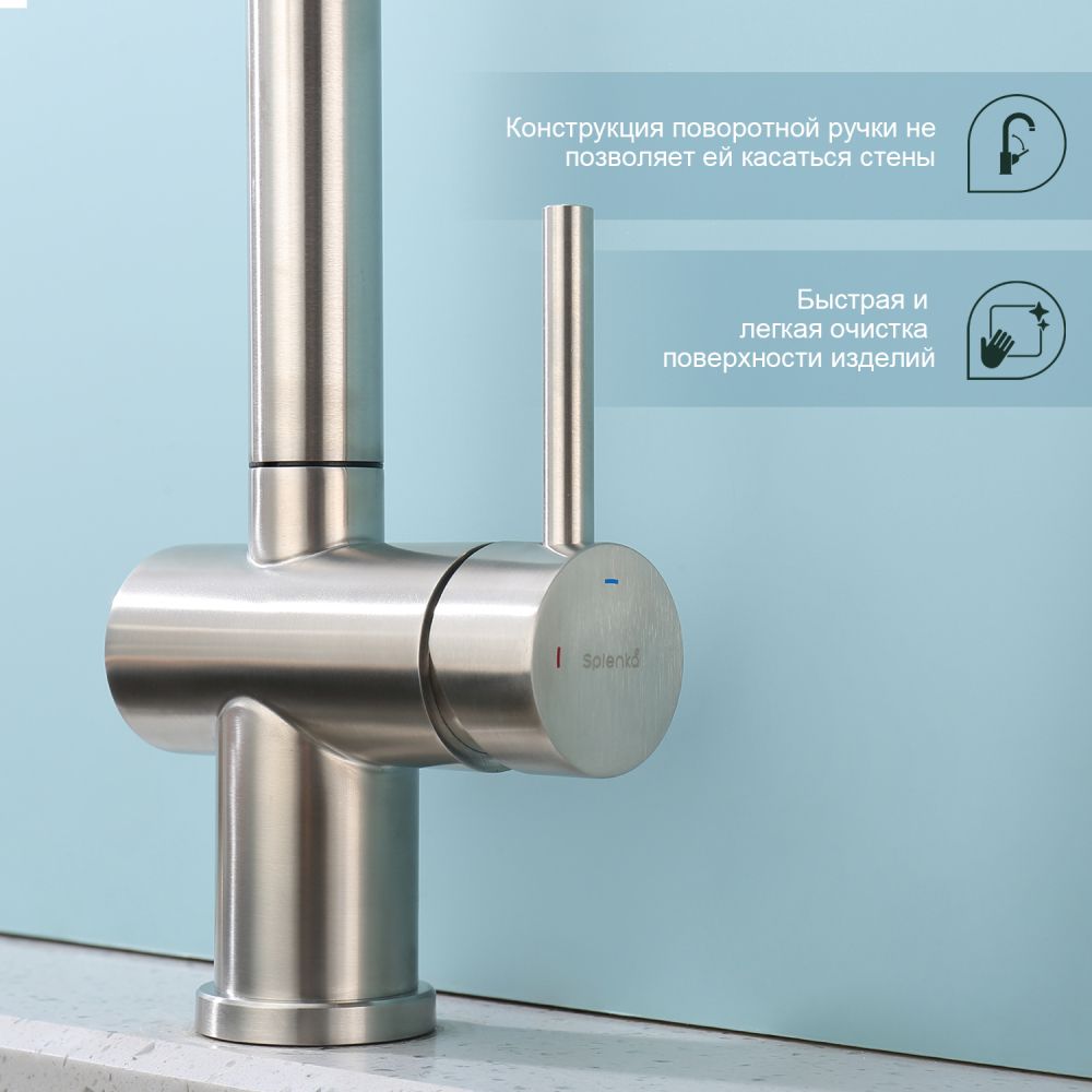 Смеситель для кухни с выдвижным изливом Splenka S204.49.05. Цвет: сатин. Смеситель для кухни с выдвижным изливом из нержавеющей стали. Излив смесителя оснащен аэратором, что обеспечивает экономичный расход воды. Излив поворотный и выдвижной. Механизм смесителя: керамический картридж. Управление рычажное. Подводка гибкая 1/2. Режимы лейки: 2. Данная модель отличается своей долговечностью и хорошим качеством.