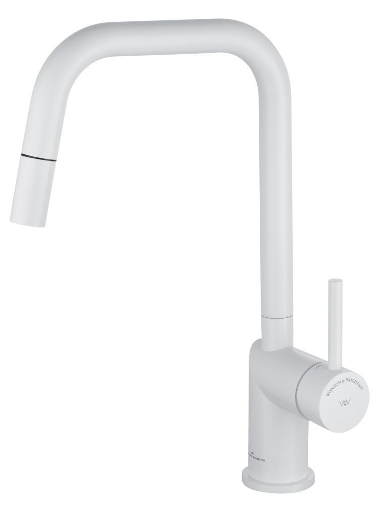 Смеситель для кухни с выдвижным изливом WONZON & WOGHAND, Белый матовый (WW-6018-MW)