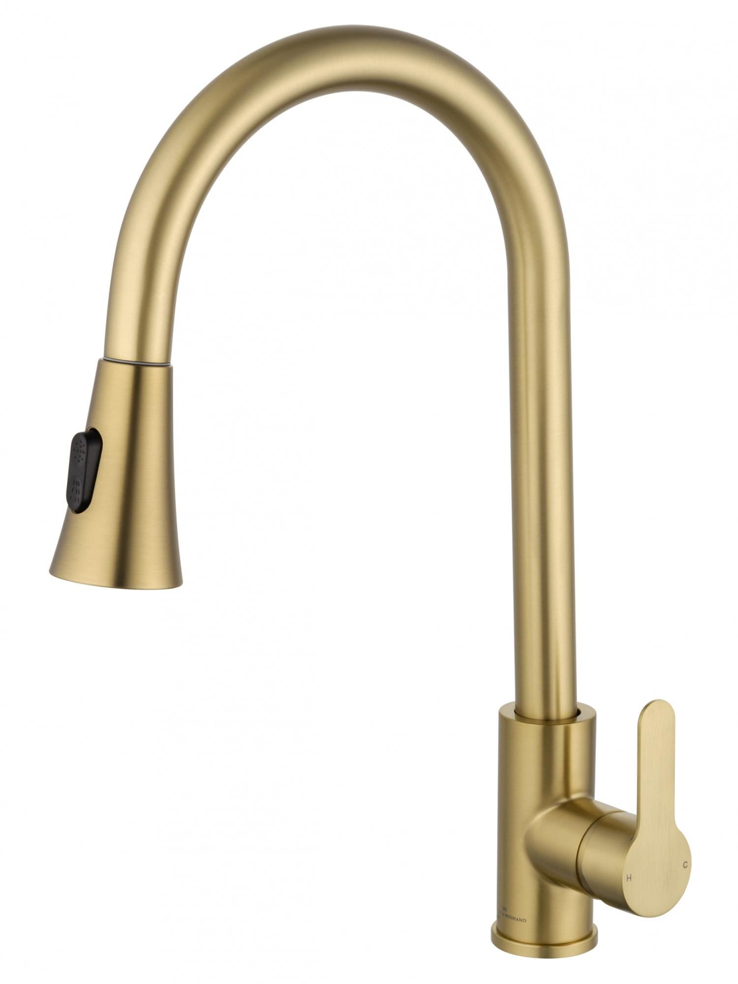 Смеситель для кухни с выдвижным изливом WONZON & WOGHAND, Брашированное золото (WW-121E201L-BG)