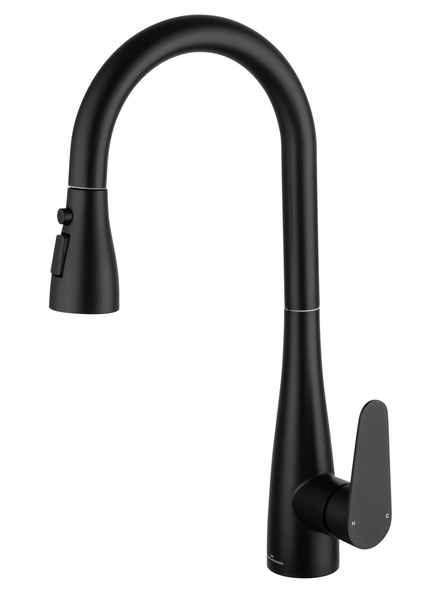 Смеситель для кухни с выдвижным изливом WONZON & WOGHAND, Черный матовый (WW-121E201B-MB)