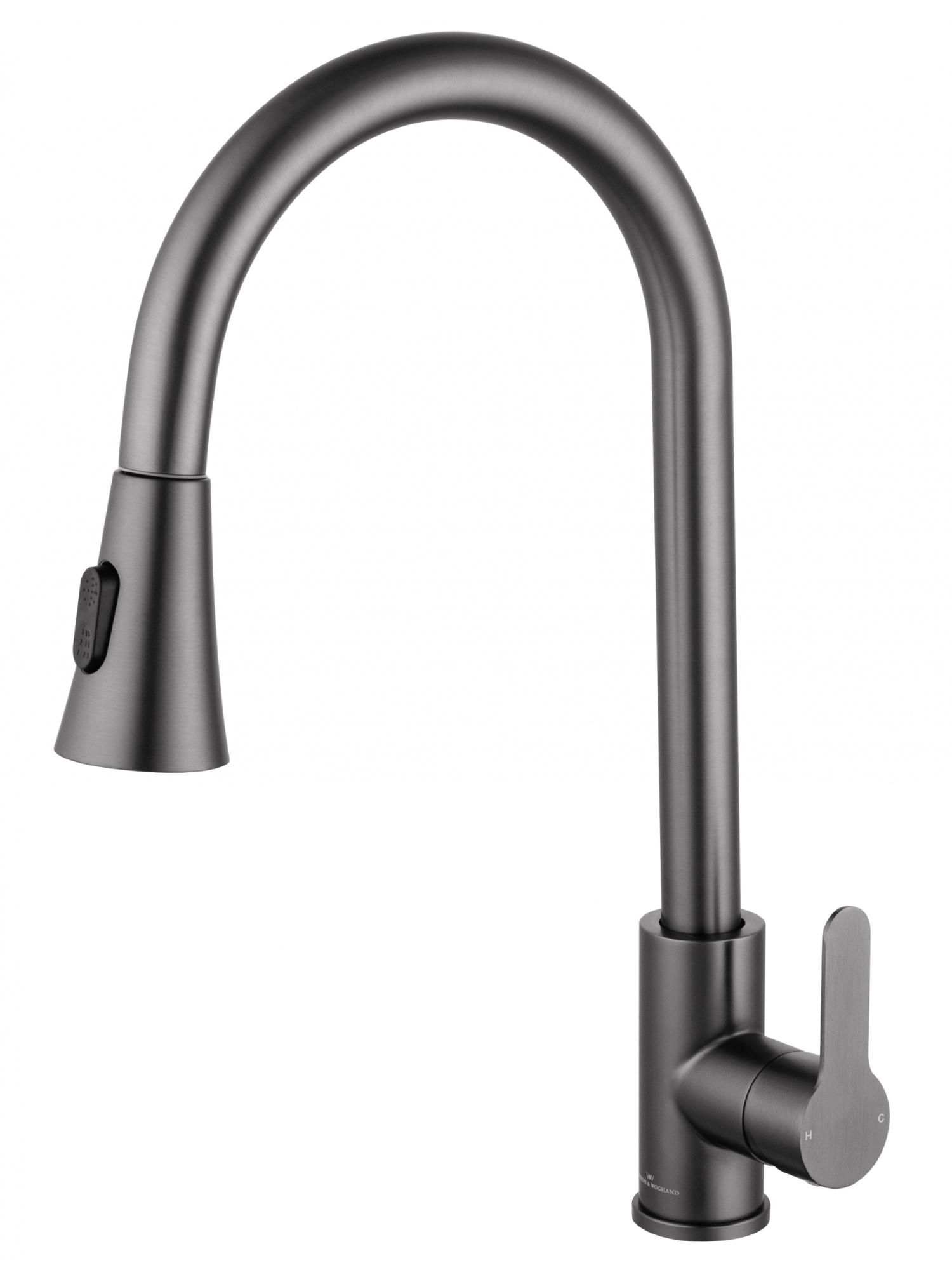 Смеситель для кухни с выдвижным изливом WONZON & WOGHAND, Темный графит (WW-121E201L-BGG)