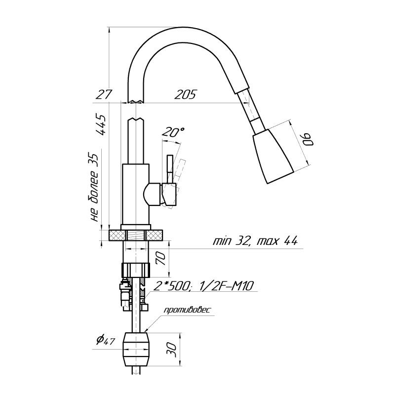 Смеситель для кухни бренда Сантаком. Производство: Россия.