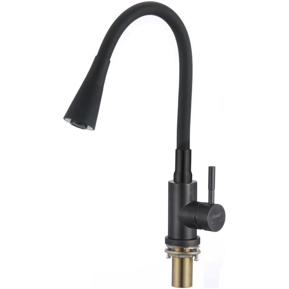 Смеситель для кухни Savol S-3002HM, черный. Гарантийный срок: 5 лет. Поверхность: Матовая. Материал: нержавеющая сталь. Монтаж: на мойку, на столешницу.