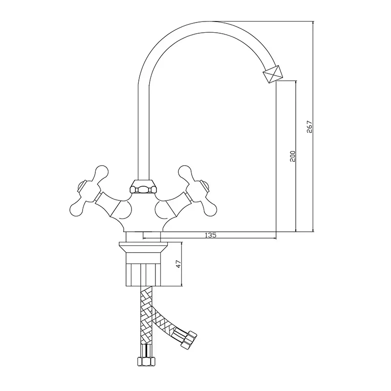 Тип подводки для воды: Подводка гибкая в нейлоновой оплетке, длина 500 мм;