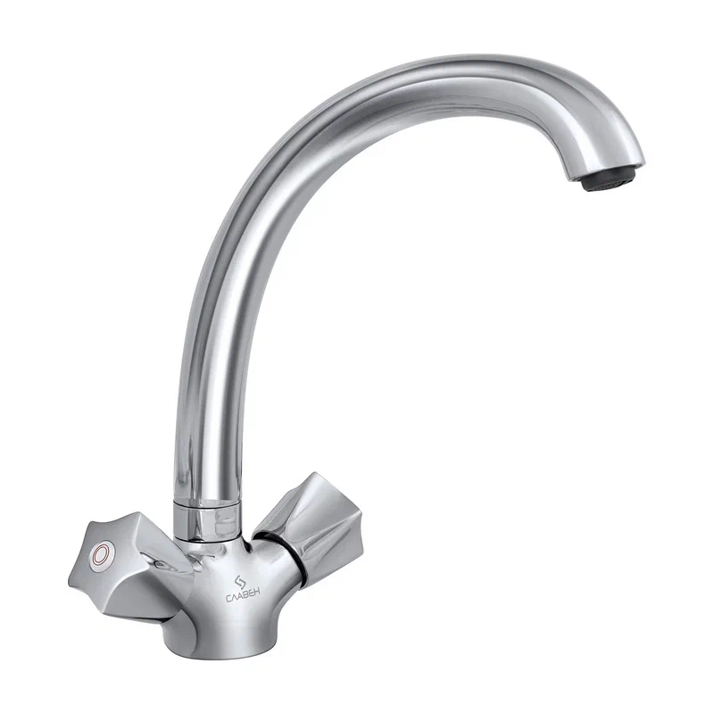 Современный двухрычажный смеситель для раковины с высоким поворотным изливом от компании «СЛАВЕН» c собственной сборочной линией полного цикла в Подмосковье.