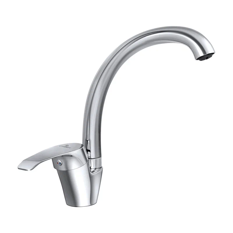 Современный однорычажный смеситель для кухни с высоким поворотным изливом от компании «СЛАВЕН» c собственной сборочной линией полного цикла в Подмосковье.