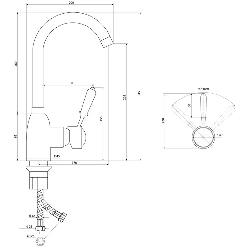 Комплектуется гибкой подводкой в оплетке из фибронейлона, паспортом изделия с гарантийным талоном, металлическим аэратором и универсальной монтажной гайкой.