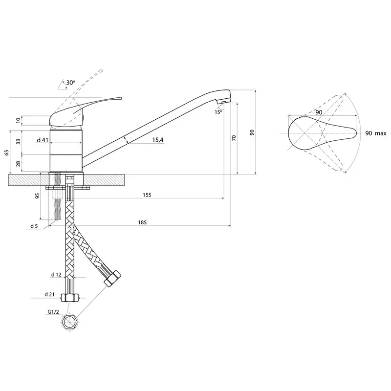 Тип подводки для воды: Гибкая подводка, длина 400 мм;