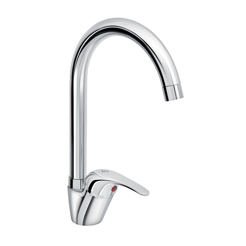 Современный однорычажный смеситель для кухни с высоким поворотным изливом от компании «СЛАВЕН» c собственной сборочной линией полного цикла в Подмосковье.