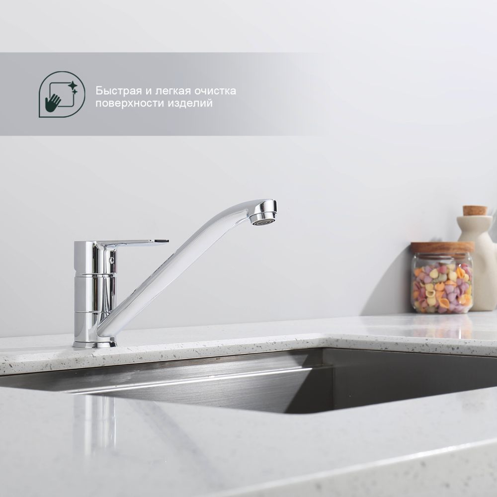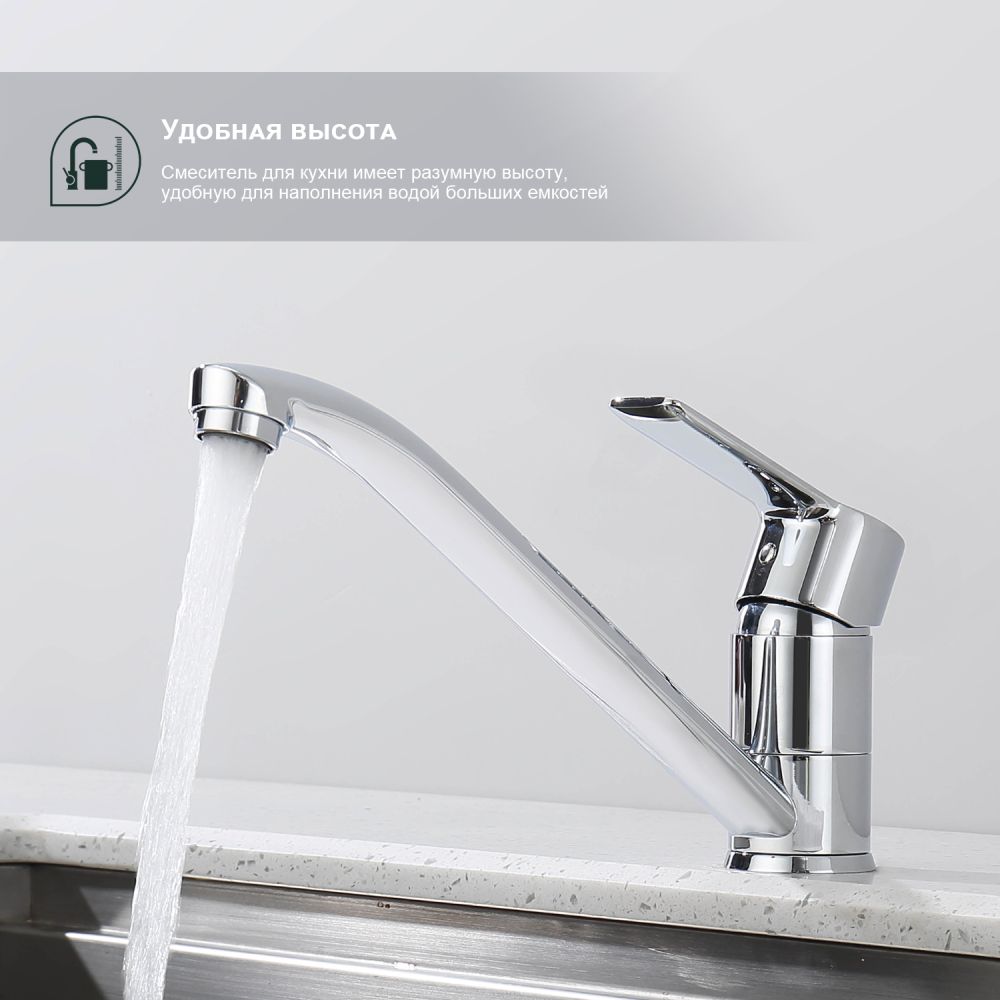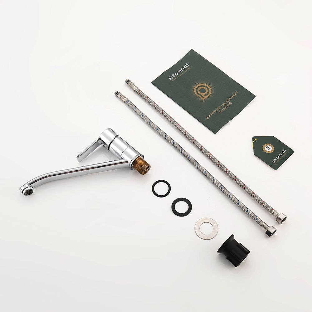 Смеситель для кухни Splenka S06.42. Цвет: хром. Гибкая подводка 50 см идет в комплекте. Благодаря грамотно разработанной конструкции, прибор отлично справляется с регулированием температуры и напора потоков воды. Однорычажные смесители максимально удобны при эксплуатации, всего одним движением руки можно закрыть или открыть воду, имеют стильный внешний вид, а также комфортность в использовании. Гарантия 5 лет.