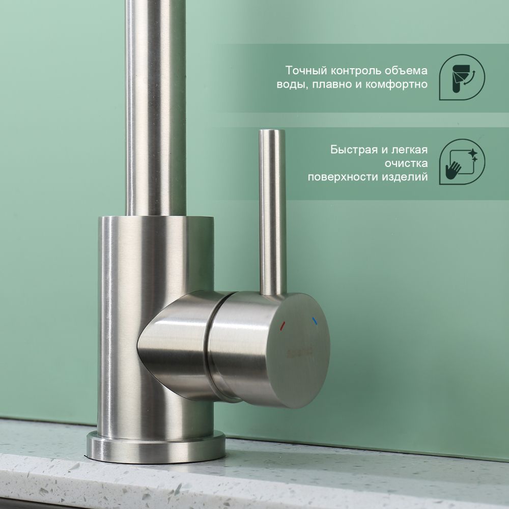 Смеситель для кухни Splenka S201.40.05. Цвет: сатин. Смеситель для кухни сочетает в себе удобную конструкцию, простоту в установке, универсальный современный дизайн и доступную цену за высокое качество.Смеситель превосходно дополнит интерьер любой кухни. В набор входит гибкая подводка размером 1/2". Монтаж на гайку. Тип подводки – гибкий. Обслуживание одного потребителя. Без температурных ограничений. Монтаж на одно отверстие.